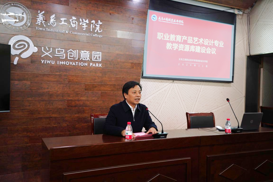 为加强职业教育产品艺术设计专业资源库参建院校协作交流,不断推进专业教学资源的开发与应用,11月22-23日,由高等教育出版社指导,我校承办的《2024年职业教育产品艺术设计专业教学资源库建设会议》在创意园报告厅顺利召开。义乌工商职业技术学院党委副书记叶斯源,上海工艺美术职业学院党委副书记、副校长王波出席会议并分别致辞。