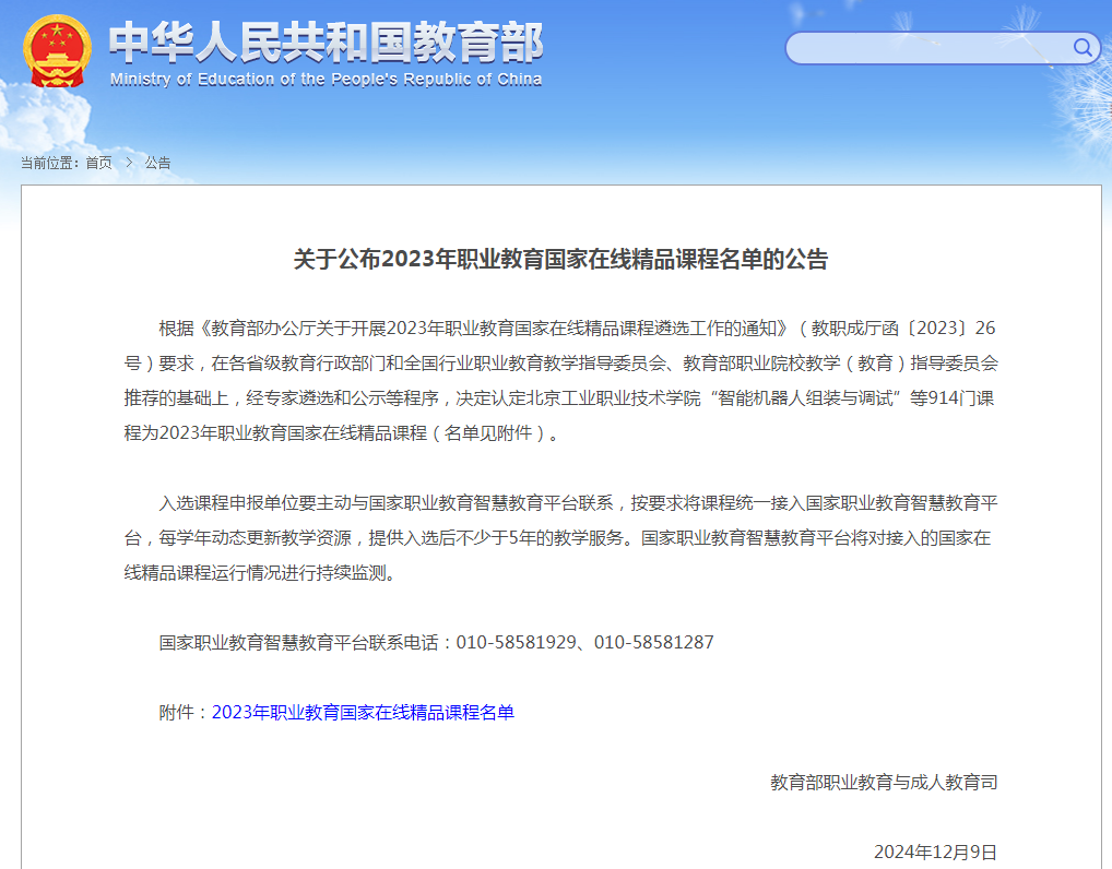 12月9日,教育部发布了《关于公布2023年职业教育国家在线精品课程名单的公告》,我校遴选推荐的《跨境电商实用英语》《外贸跟单实务》和《办公软件应用》三门课程成功入选。这是我校在课程建设与教学改革领域取得的又一标志性成果。