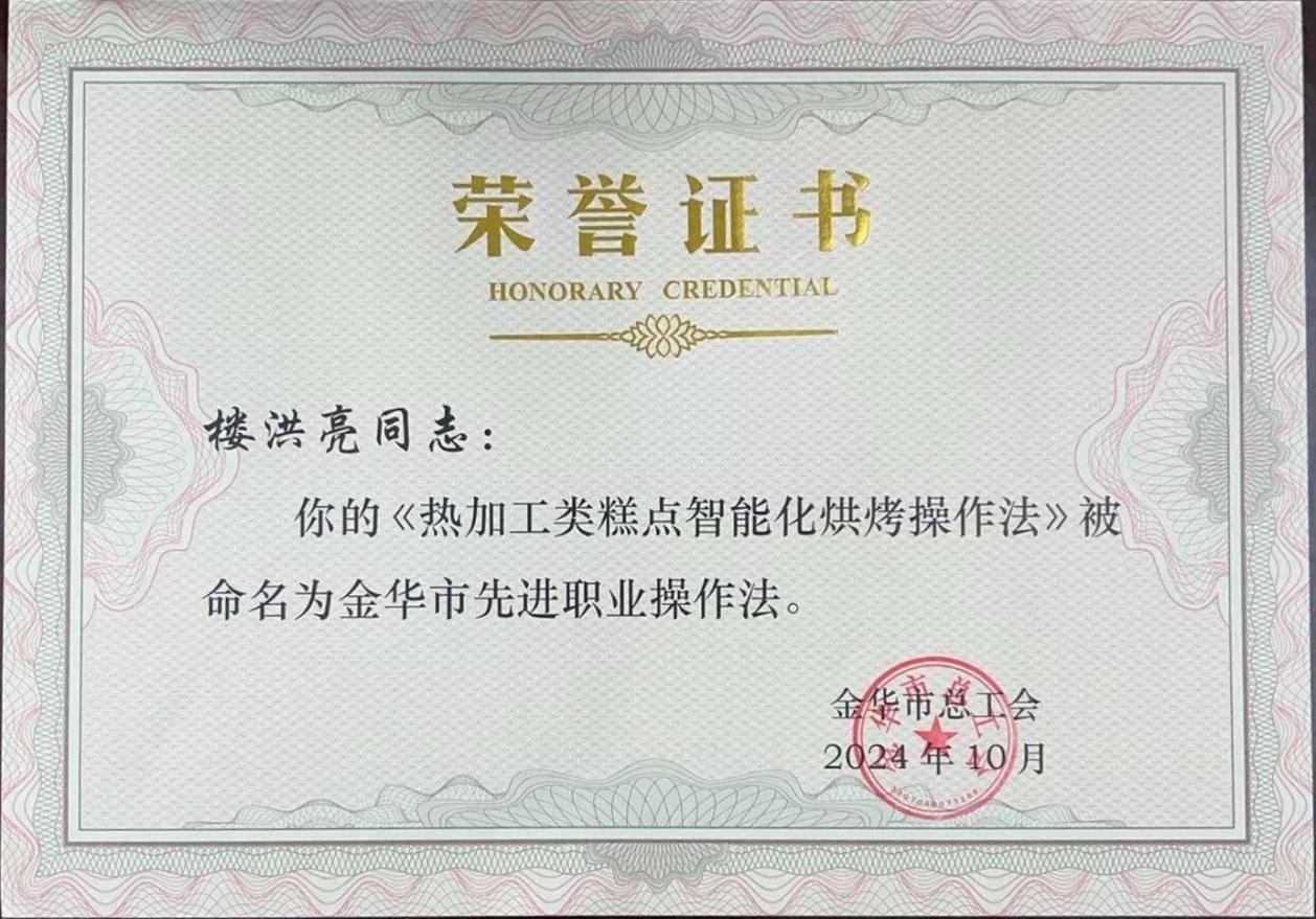 近日,金华市总工会发布了2024年金华市先进职业操作法公示名单,由我校人文旅游学院教师楼洪亮创立的“热加工类糕点智能化烘烤操作法”,成功入选。这是我校首次获得此项荣誉,标志着我校在职业技能创新领域的突破与成就。