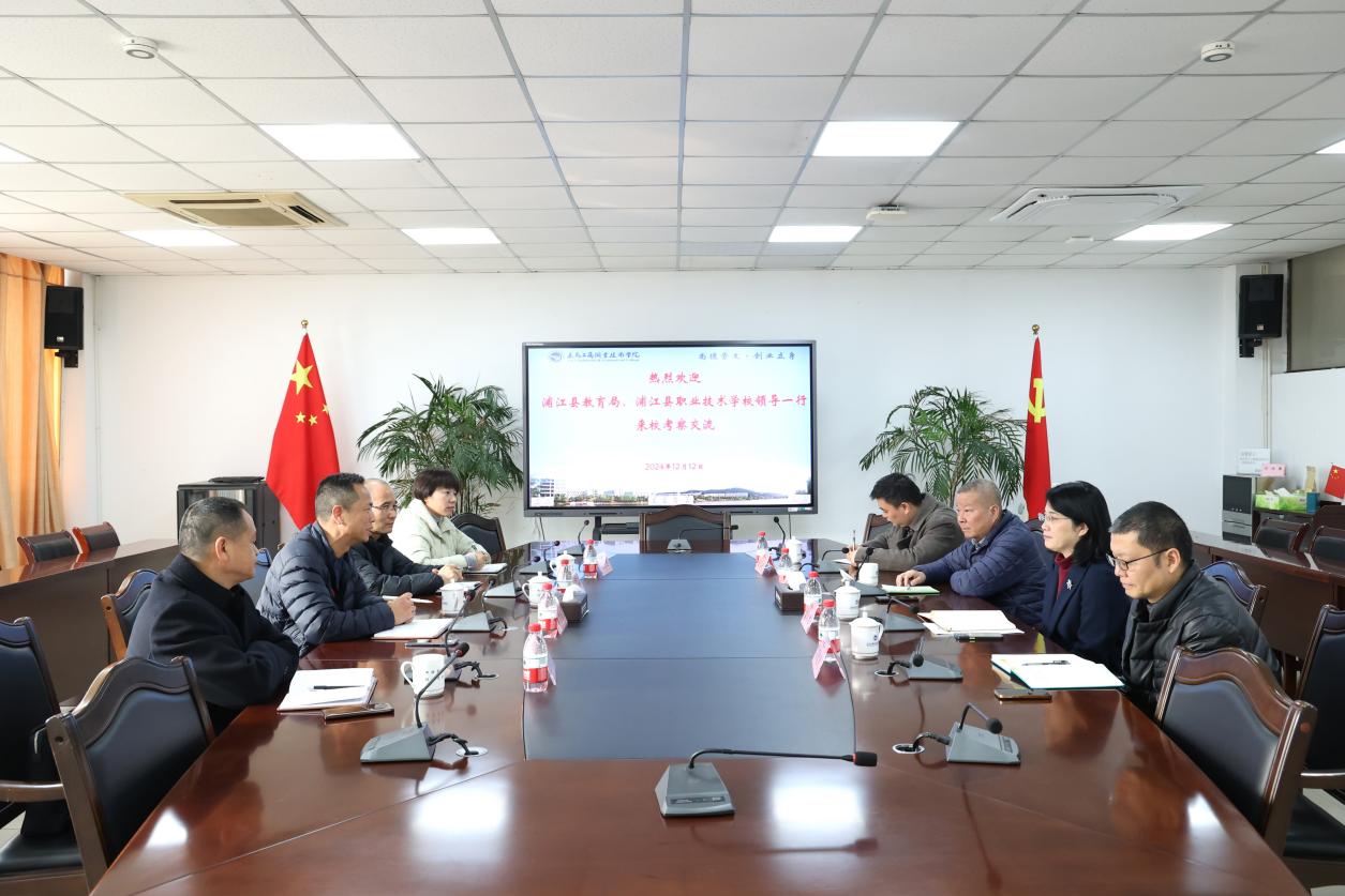 12月12日上午,浦江县教育局党组书记、局长黄志余,浦江县职业技术学校党委书记、校长李卫平一行莅临我校进行交流座谈。此次来访旨在深化合作,共同探讨双方区域一体化合作办学项目内容与前景。我校院长马广、副院长盛湘君出席座谈会,教务处、招就处相关负责人参加会议。
