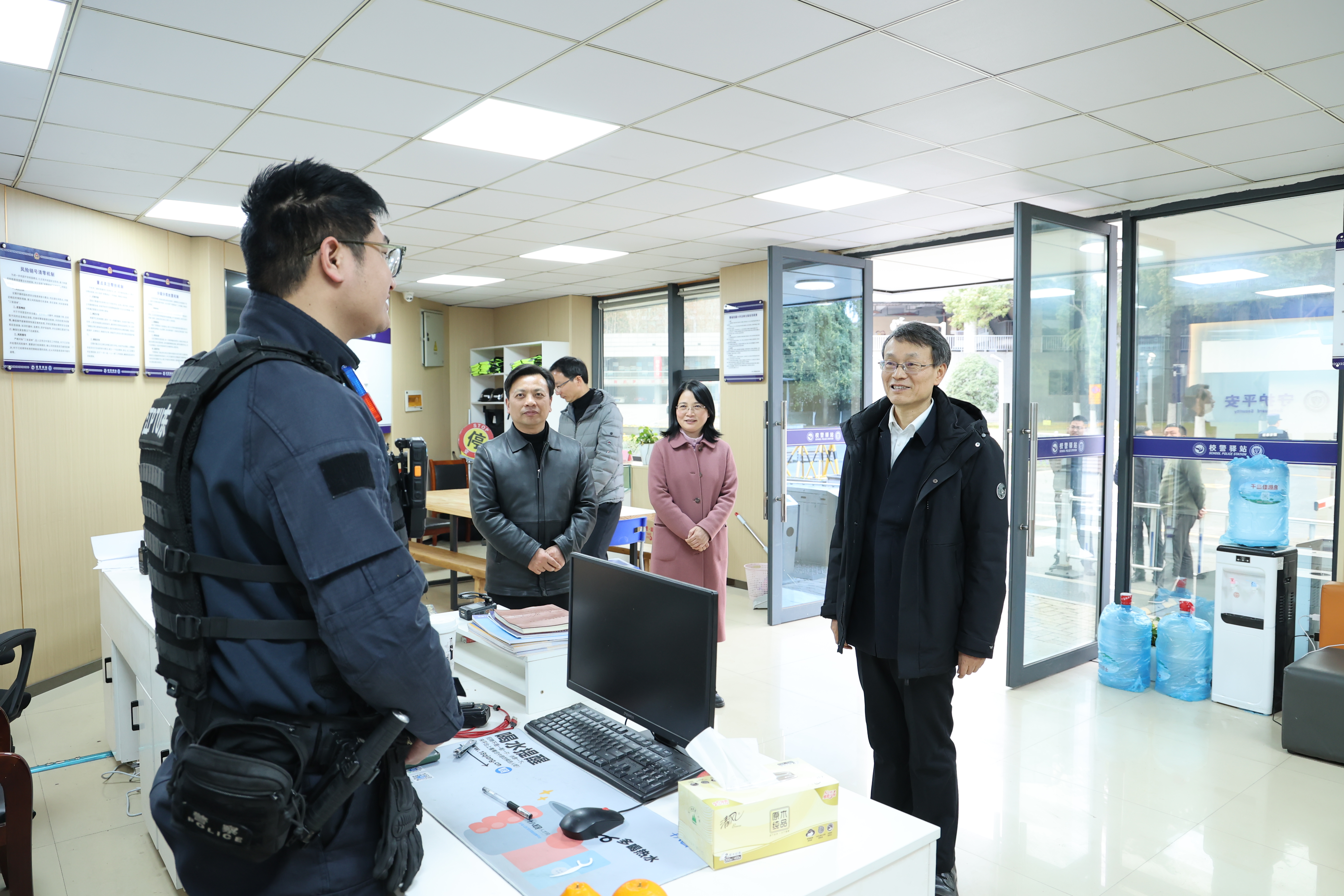 随后,李昌祖一行前往各学院慰问值班人员并进行亲切交谈,悉心询问了假期值班情况和他们的工作生活状况。他代表学校对坚守岗位的教职工表示感谢,并强调春节期间的安全稳定工作不容忽视,要求各单位务必做好值班值守,确保校园安全稳定。