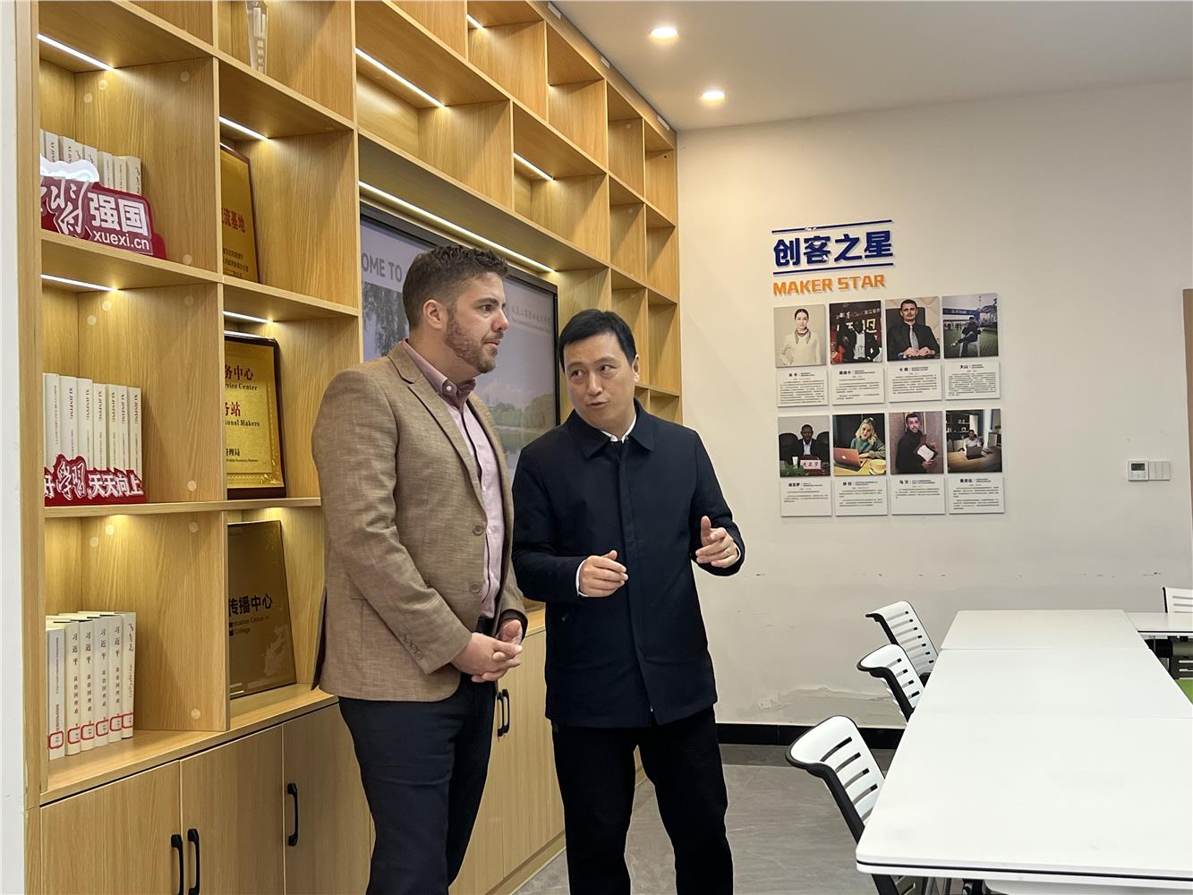 为进一步了解学校办学特色,西英格兰大学客人一行还参观了多语种跨境直播中心和国际创客园。