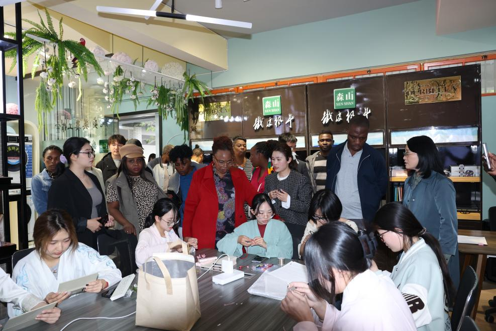 代表团先后参观走访了学校创业园和多语种跨境直播中心,全面了解到我校依托全球最大小商品市场的地缘优势,积极推动“校企合作、师生同创、专创融合”的创新创业人才培养模式。我校在跨境电商运营、跨境电商客服、直播电商等领域的人才培养实践成果显著,引起代表团成员的高度关注。他们对我校的创新模式给予充分肯定,并期望引入我校创新创业教育模式,通过合作共育跨境电商专业人才,共同分享“一带一路”建设的丰硕成果 。此外,代表团还与我校非洲学生代表进行了深入交流,围绕在义乌的创新创业经历与发展规划展开探讨,进一步拓展交流。