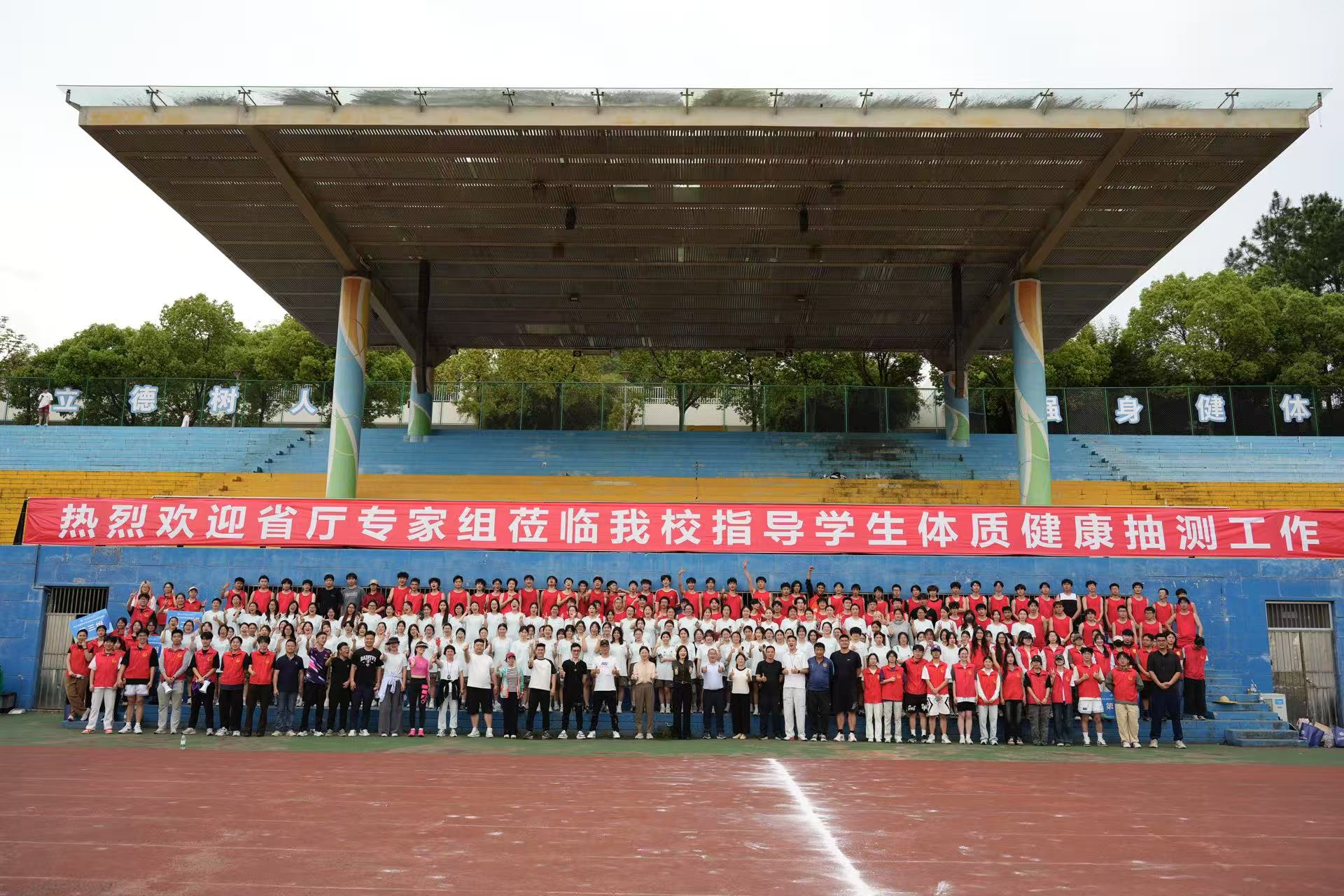 4月21日,在浙江省教育厅的精心组织下,省大学生体质健康抽测专家团队莅临学校,对我校学生体质健康状况进行了现场抽测。校领导叶斯源、徐美燕前往测试场地指导工作,与二级学院领导和学生工作负责人一同为学生加油鼓劲。来自建筑工程学院和人文旅游学院的240名大二学生参与了本次抽测。