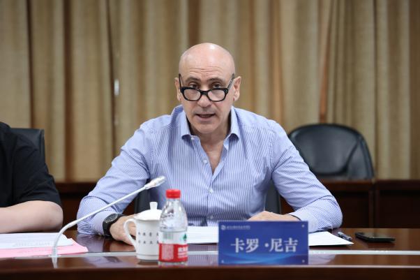 卡罗·尼吉高度评价我校办学特色,对学校的热情接待表示衷心感谢,介绍了佛罗伦萨自由美术学院始终秉持“将艺术传统与当代产业需求融合”的理念,构建了兼顾文化传承与工匠精神的教学体系,培养了大批兼具艺术视野与设计能力的创意专才。他表示,意大利总理梅洛尼2024年访华开启了两国教育交流合作新篇章,期待双方以此为契机,加强交流、深化合作,共育高质量国际化设计人才。