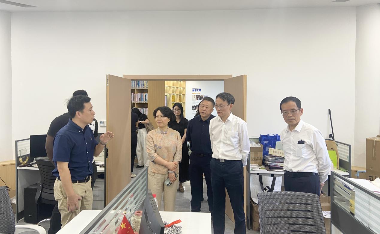 座谈之前,调研组一行参观了学校国际创客园,深入了解园区在国际交流与创新创业教育的成果与特色。