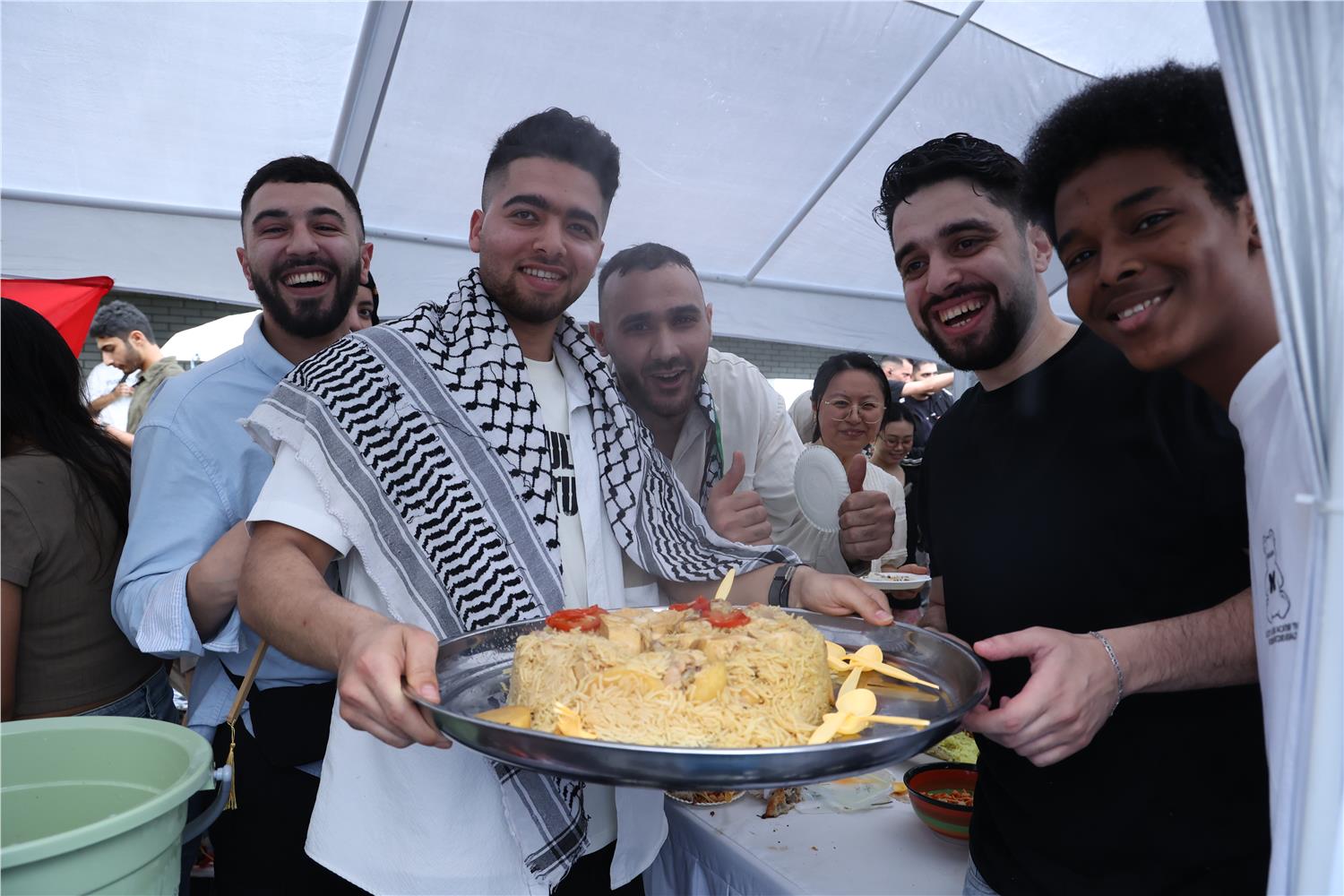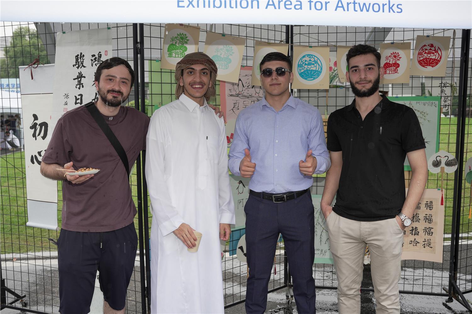 开幕式后,学校第九届“丝路筑梦 五洲同创”国际文化节正式启动。游园会设有世界各国美食体验区、中国文化体验区和朱丹溪中医药文化体验区等。在世界各国美食体验区,国际学生们带来了各自国家的特色美食,让嘉宾和中外师生品尝到了异国风味。在义乌颇负盛名的MADO、阿里亚娜、博斯餐厅也带来了各自的特色美食,为文化节增添了一抹亮色。中国文化体验区邀请了非遗传承人和书画名师现场展示了书法、国画、剪纸等传统技艺,吸引了众多中外师生驻足观看和学习。他们亲手尝试制作中国传统手工艺品,感受中华文化的独特魅力。朱丹溪中医药文化体验区则通过展示中药材、讲解中医养生知识等方式,让中外师生对中医药文化有了更深入的了解和认识,现场还有中医专家提供义诊服务,让中外师生亲身体验到了中医药的神奇疗效。此外,游园会还设置了互动游戏和文艺表演等环节,中外学生们不仅参与汉服、剪纸、书法、空竹等中国传统非遗项目的体验打卡活动,还可以领略来自不同国家的传统服饰、手工艺品等。中外师生纷纷登台献艺,展示了各自国家的传统舞蹈、歌曲和乐器演奏等,赢得了现场观众的阵阵掌声和喝彩。