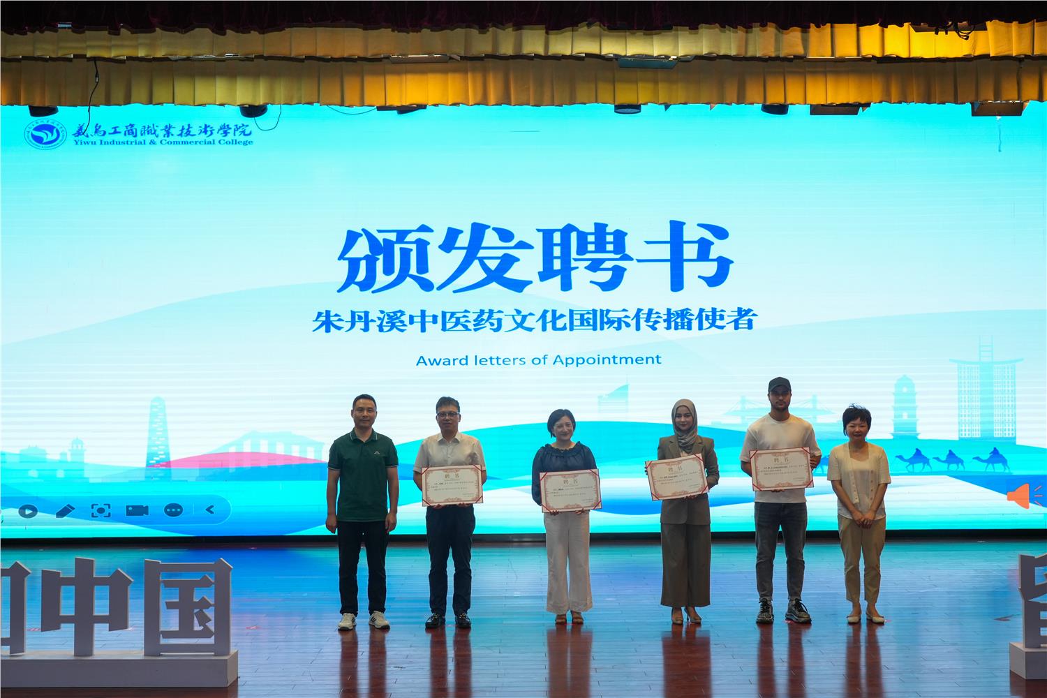 义乌市中医医院党委副书记、纪委书记吴慧芳和校机关党委书记、宣传部负责人为张挺、傅雅萍、丽娜、费宁等4人颁发了朱丹溪中医药文化国际传播使者聘书。国际传播使者们将积极参与线上线下活动,并借助短视频平台向全球生动展现中医药文化的精髓,推动其价值的广泛传播与认可。后续还将通过讲座、文化交流、互动体验等形式进一步拓展传播维度。