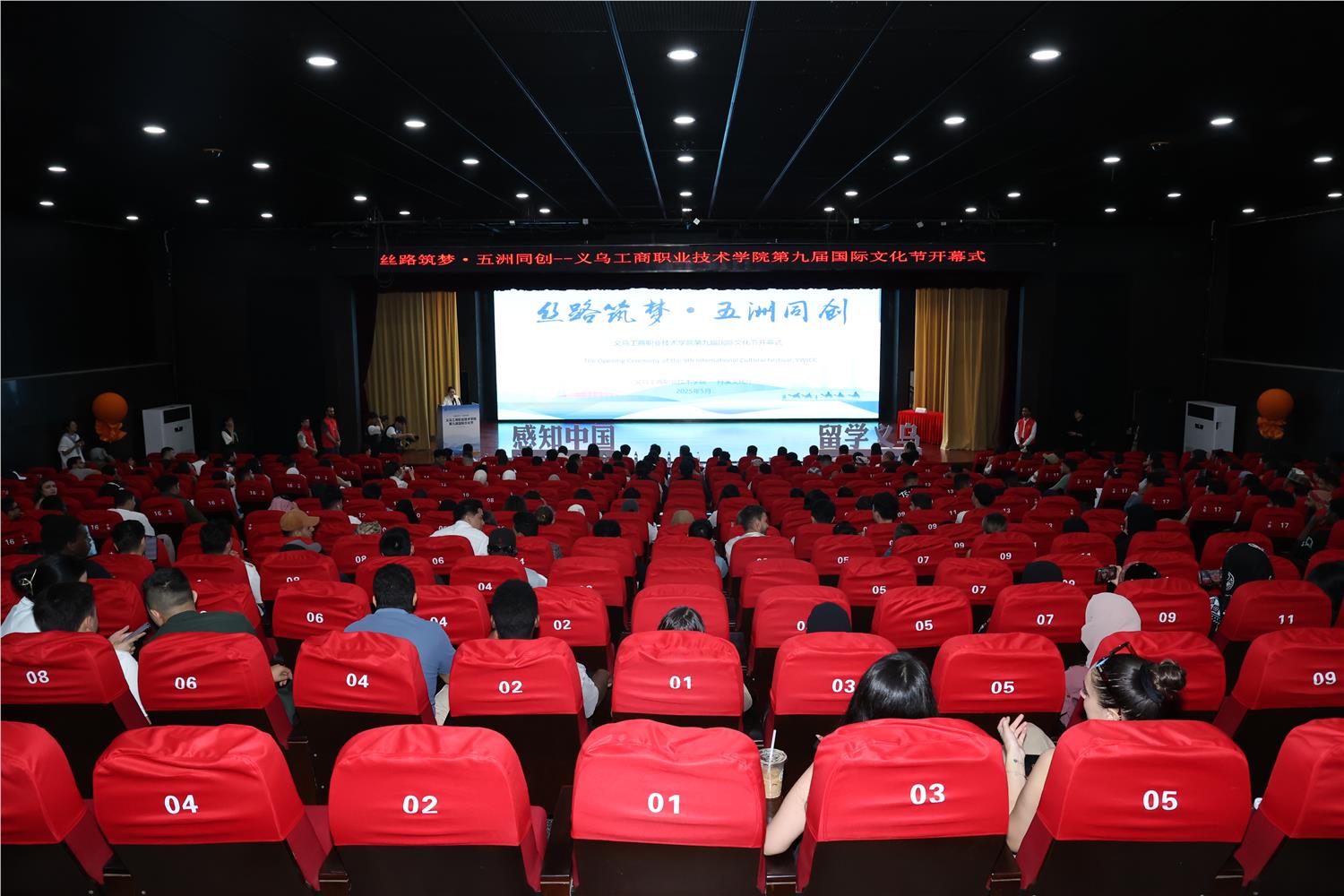 为增进中外文化的相互理解与借鉴,促进不同文化之间的交流与融合,搭建政校企合作平台,5月20日上午,由国际教育学院主办的第九届国际文化节在丹溪文化厅顺利开幕。义乌市外事办副主任朱高民,义乌市卫健局党委委员方才宝,义乌市中医医院党委书记王利健,义乌市公安局出入境管理局中队长王娇燕,义乌市福田街道商城社区党委书记刘训恒,浙江稠州商业银行义乌管理部总经理助理罗行舟,学校党委委员、副院长樊曜,校友总会会长何少庆出席活动,卫健局、中医医院、商城社区和稠州商业银行的相关嘉宾,学校相关职能部门负责人、二级学院党组织负责人、国际学生,国际教育学院全体师生等共计500余人参加此次活动。