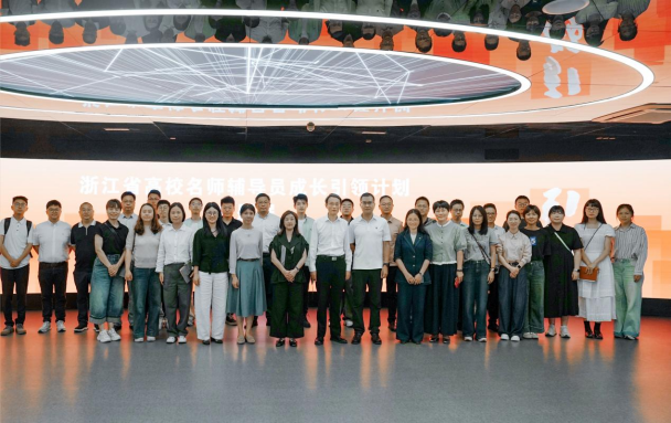 会后,李昌祖带队参观了“浙江省高校名师辅导员成长引领计划”主题展览,同时与省教育厅宣教统战处三级调研员丁晓、浙大城市学院党委书记董悦进行了现场交流。在浙大城市学院卢露老师的引导和讲解下,全体成员共同观看了主题短片《留年》,并依次参观了“序言”“导师群像”“教学实践”“成果展示”四大展区,听取了温州教育局高教处处长吕信恩老师的主题微课。通过此次观展,辅导员们深刻体会到了浙江省辅导员队伍在思想引领、心理育人、职业规划等领域的创新实践和显著成效。