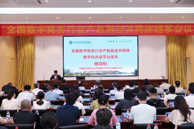 在全体与会代表共同见证下,共同体常务副秘书长、学校创业学院副院长杨剑钊宣布全国数字商务行业产教融合共同体数字化共享平台正式发布,平台面向共同体成员单位免费开放。该平台将有效解决长期以来产教融合过程中信息不对称、资源碎片化、协同效率低等痛点问题,为推动数字商务领域人才培养模式创新提供有力支撑。