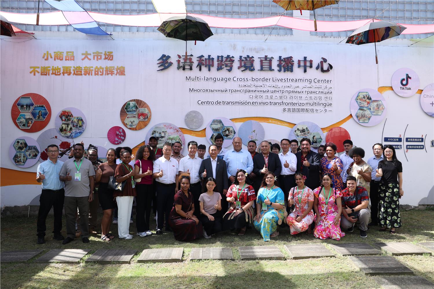 参观期间,使团成员就跨境电商的物流、直播平台、直播话术、培训项目、现代学徒制人才培养等进行深入交流与探讨,使团成员对我校依托义乌市场优势、创新跨境电商人才培养的模式表示高度赞赏,并表达了引入相关课程与培训体系、共同培育跨境电商人才的强烈意愿,希望以此次访问为契机,深化太平洋岛国与义乌在“一带一路”倡议下的务实合作。