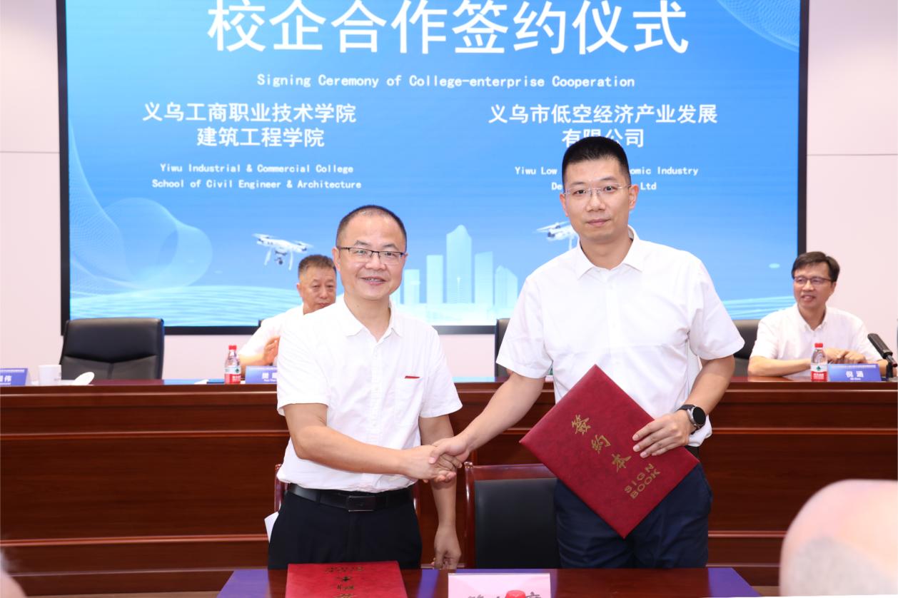 在校企合作签约仪式环节,建筑工程学院负责人分别与义乌市低空经济产业发展有限公司与杭州迅喵数字科技有限公司代表签署了校企合作协议。