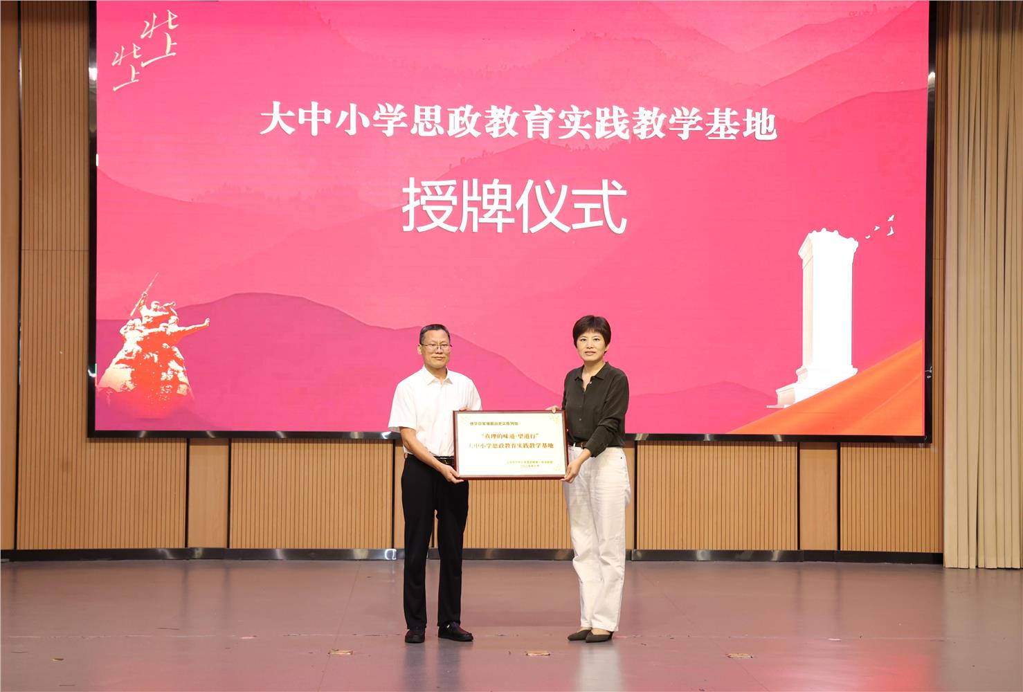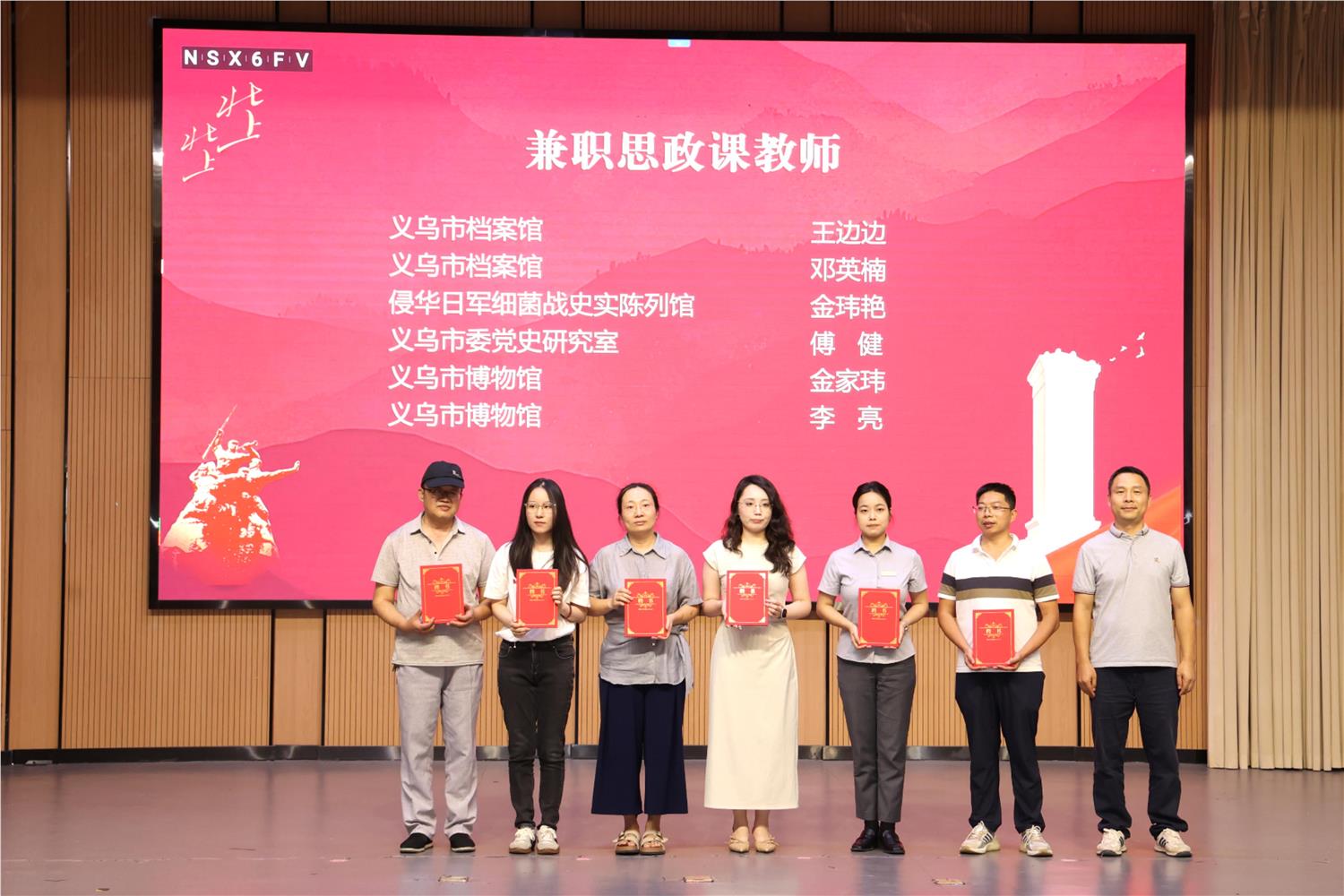启动仪式上,陈建英向大中小学生代表赠送书籍《传奇义乌》,以此勉励青少年从地方历史中汲取精神滋养。现场还举行了“大思政课”基地授牌仪式,将义乌侵华日军细菌战史实陈列馆列为义乌市“真理的味道·望道行”大中小学思政教育实践教学基地,来自义乌市委党史研究室、市博物馆、细菌战史实陈列馆等单位的专家受聘为兼职思政教师,马克思主义学院政治理论党支部与义乌市博物馆党支部共同签署党建联建合作协议,通过共建基地、共享师资、馆校联动,用心用情讲好抗战故事,将丰厚的本土红色资源转化为生动的育人素材。在思政微课环节,师生代表分别以《抉择》《铭记不朽印记 传承抗战精神》为题,通过三个场景的深入叩问与三件文物的深情讲述,还原了革命岁月中的闪光片段,生动展现了思政教育的感染力与时代内涵,引发了全场强烈共鸣。