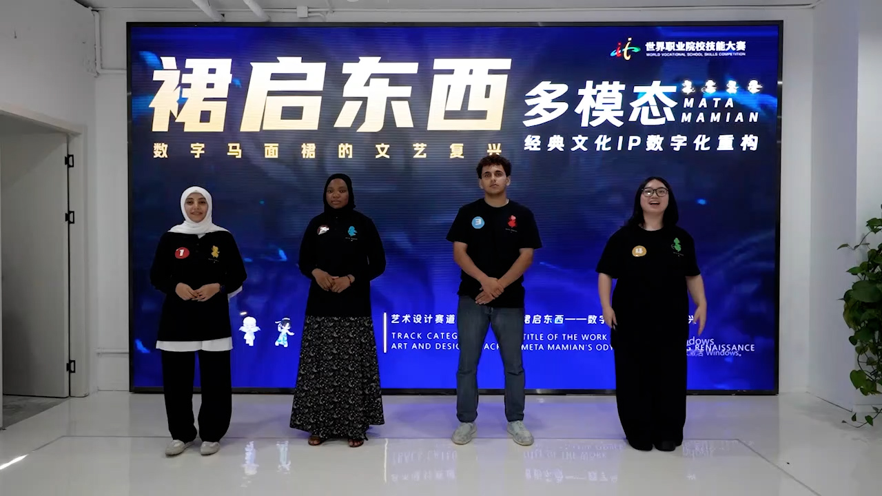 近日,2025年世界职业院校技能大赛总决赛争夺赛国际组“文化艺术设计”赛道传来喜讯——由义乌工商职业技术学院与意大利佛罗伦萨自由美术学院合作办学项目联合组建的师生团队,在指导教师朱清沁的带领下,由学生曲茜睿、ABRAR MOHANMED AHMED GHALEB、GOUMANE DJENEBA、Yussef Mouhamad Moustapha Sarti等中外成员共同完成的“裙启东西:数字马面裙的文艺复兴”项目,凭借其深厚的文化内涵与前沿的数字交互设计,荣获该赛道银奖。这一成绩不仅是我校在国际高水平赛事中的又一重要突破,也标志着中外合作办学在推动传统文化创新与跨文化设计对话方面取得了实质性进展。