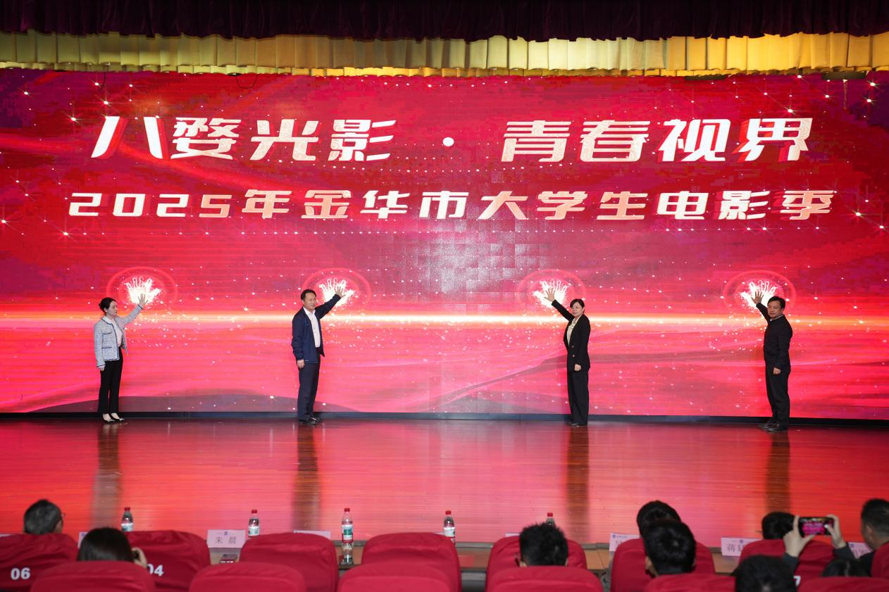 随后,主办单位与承办单位领导共同上台,正式启动2025年金华市大学生电影季,将现场气氛推向高潮。