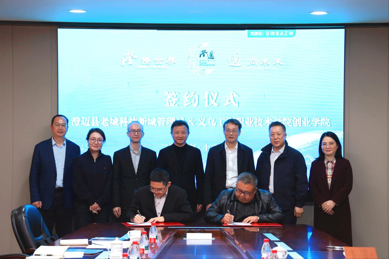 座谈会最后,澄迈县老城科技新城管理局与学校正式签署战略合作协议;澄迈县人民政府与学校创业学院共同为双方共建的“创新创业人才培养实践基地”揭牌。