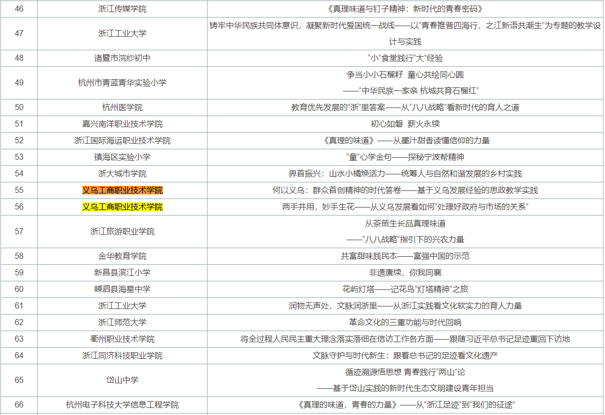 关于浙江省“真理的味道”大思政课实践教学案例征集活动结果的公示