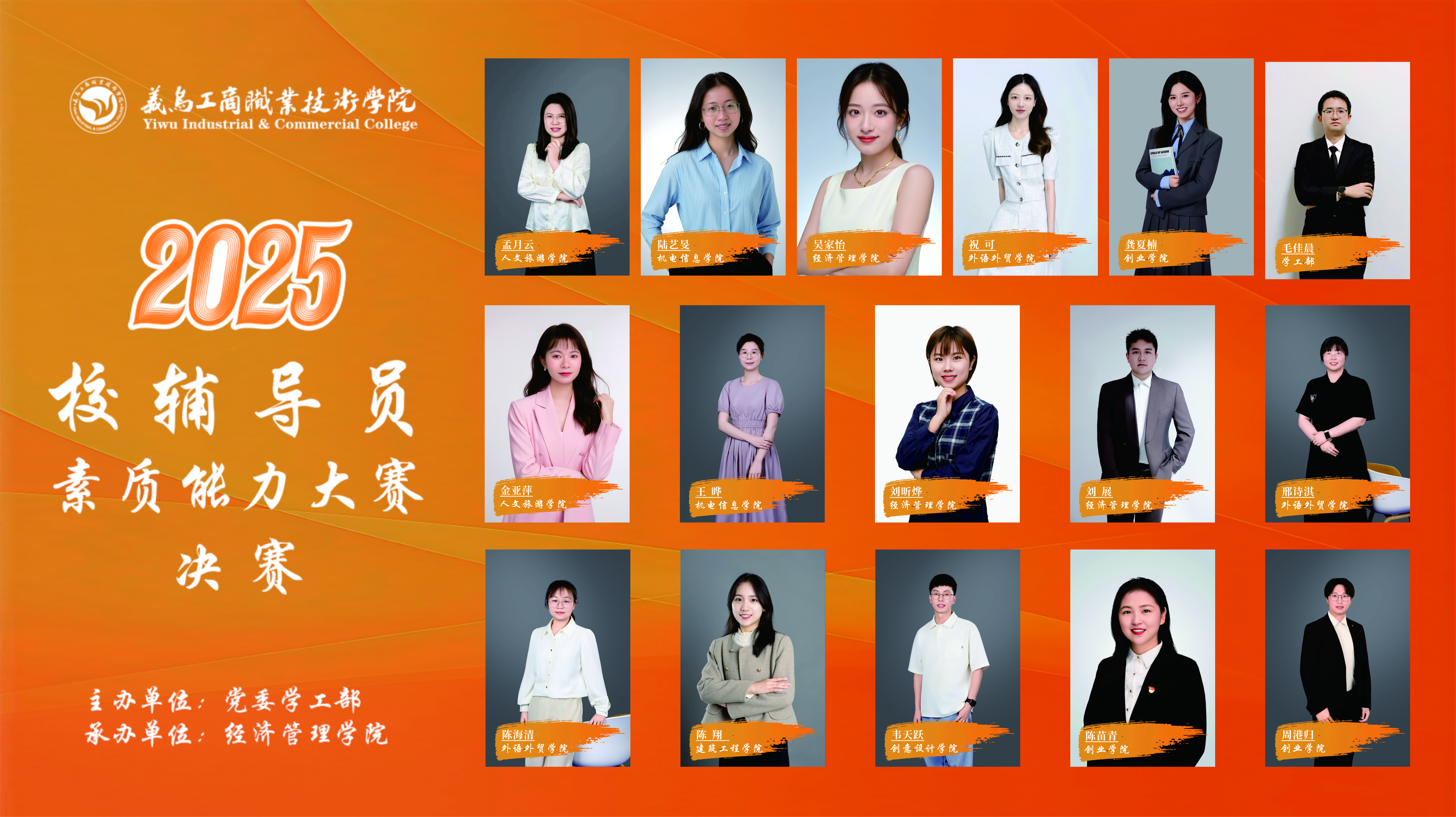 为持续推进我校辅导员队伍的专业化、职业化发展,由校党委学生工作部主办、经济管理学院承办的2025年辅导员素质能力大赛决赛在大学生活动中心麦穗报告厅圆满落幕。校党委委员、副院长徐美燕出席活动,金华职业技术大学、浙江广厦建设职业技术大学等校外专家,学生工作相关职能部门负责人,各二级学院党组织负责人担任此次大赛评委,全体辅导员观摩了此次大赛。