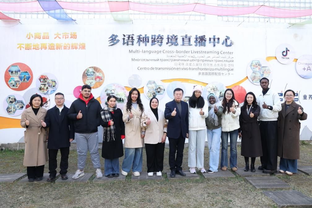 李昌林首先参观了国际创客园,详细了解学校在知华友华爱华国际学生培养、国际创新创业人才培育、“留学义乌”品牌建设的创新实践,肯定了我校留学生培养的独特模式。随后来到多语种跨境直播中心,与摩洛哥义乌丝路学院国际经济与贸易专业“2+1”学生亲切交谈,实地观摩了我校学生运用英语、西班牙语等多种语言进行跨境电商直播的场景,对学校紧跟数字经济浪潮、培养实战型外语贸易人才的模式给予了高度评价。