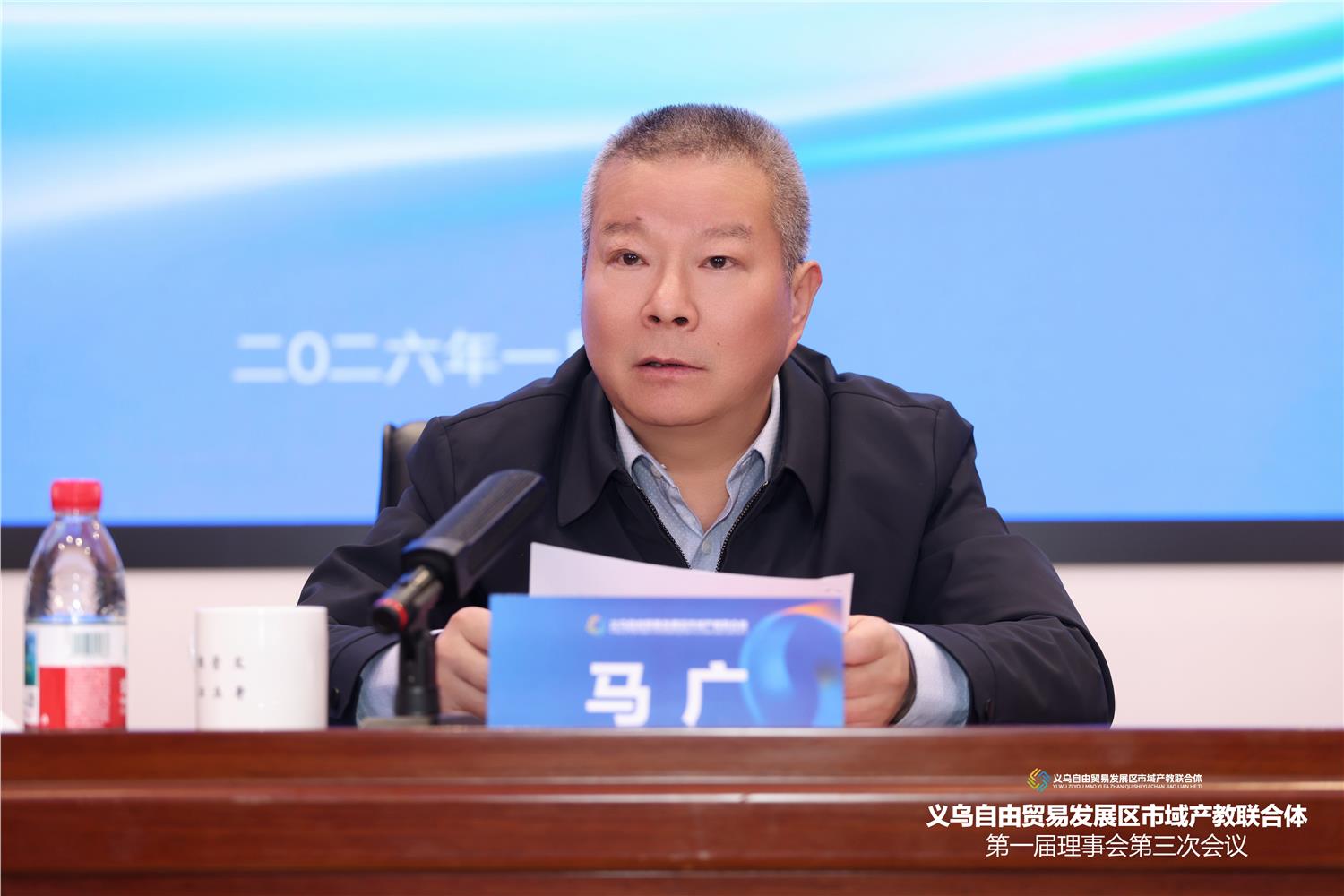 2026年1月16日上午,义乌自由贸易发展区市域产教联合体第一届理事会第三次会议在义乌工商职业技术学院文美厅顺利举行。义乌工商职业技术学院院长马广,义乌市人民政府党组成员、自贸发展区党工委副书记、管委会主任俞华忠,浙江中国小商品城集团股份有限公司董事长陈德占等领导嘉宾,以及联合体各成员单位代表出席本次会议。