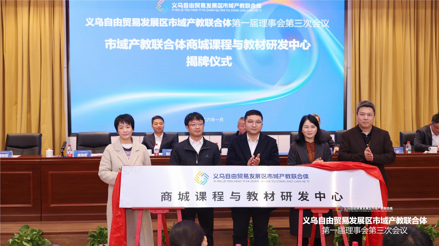 此外,会议举行了联合体自贸改革发展促进中心、义乌跨境电商产业园开放型区域产教融合实践中心、商城课程与教材研发中心揭牌仪式,三大中心的落地揭牌,为深化区域产教融合、推动校企协同发展构筑了重要支撑平台。