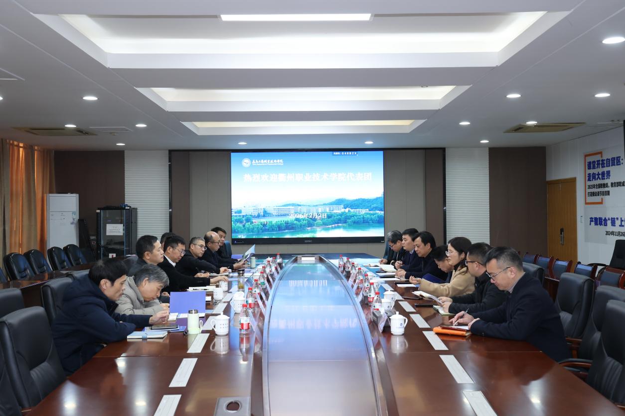 2月2日下午,衢州职业技术学院党委书记祝建东,党委副书记、校长吕延文,党委委员、副校长姚水洪一行来校考察交流。学校院长徐美燕、党委副书记叶斯源以及人事处、教务处、科技处、校企合作处、外语外贸学院、创意设计学院、创业学院等相关负责人陪同考察并开展座谈交流。