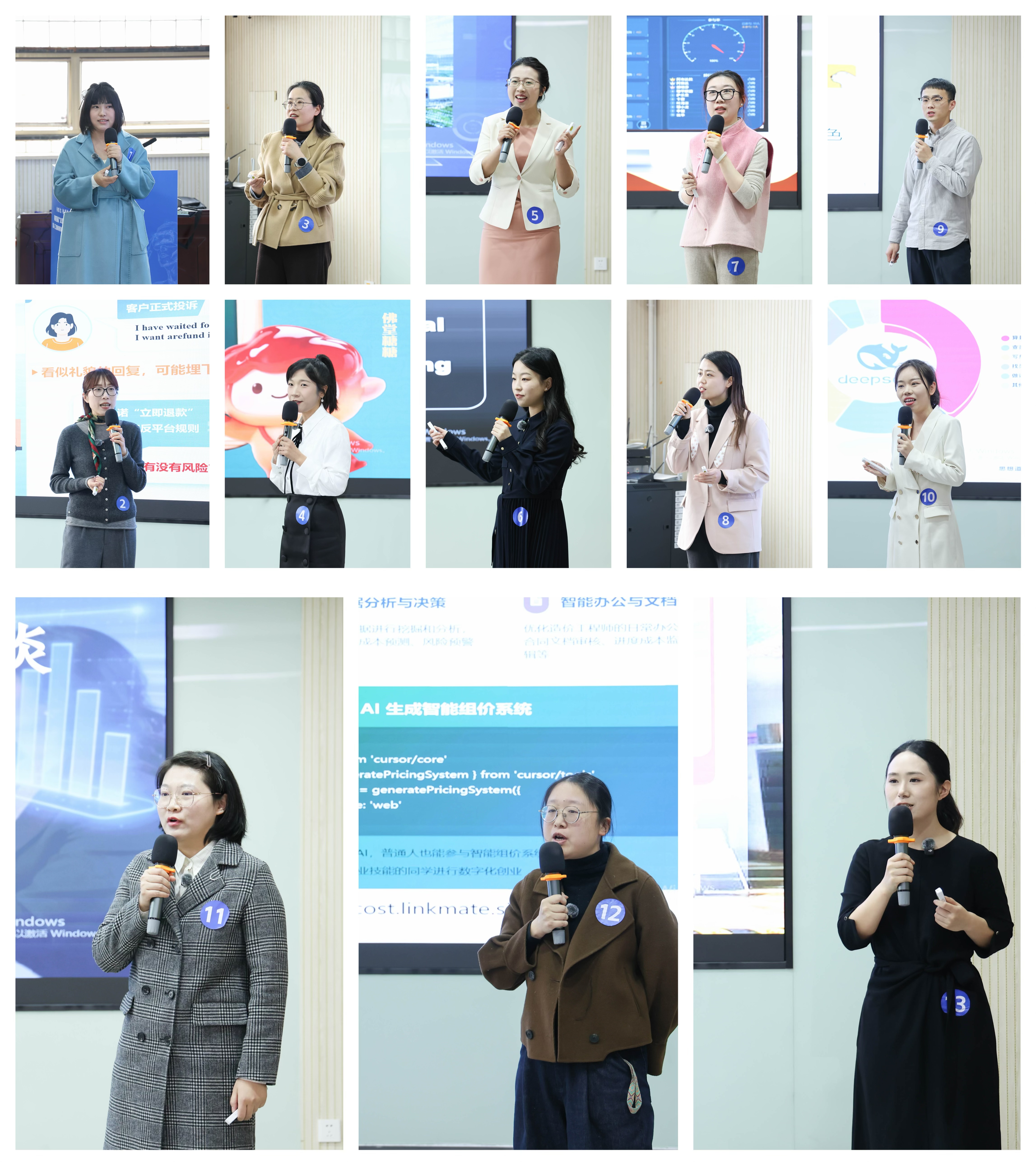 决赛现场,经院级选拔脱颖而出的13名教师各展所长,借助人工智能技术构建职场化教学场景,依托企业真实项目动态设计教学内容,通过AI学伴协同开展探究式学习,运用课程智能体实现学情监测与闭环评价,充分展现了“人工智能+教学”的多元创新形态。经过专业评审,陶颖等5位老师获一等奖,姜申心等8人获二等奖,国际教育学院、人文旅游学院获评优秀组织奖。专家点评指出,在人工智能融入教育教学的过程中,不仅应有“术”的运用,更需要有“人”的温度。专家认为,此次大赛不仅是教师教学能力的展示平台,更彰显了学校以赛促改、以赛促融的决心,推动人工智能等信息技术与教育教学深度融合的坚定决心。