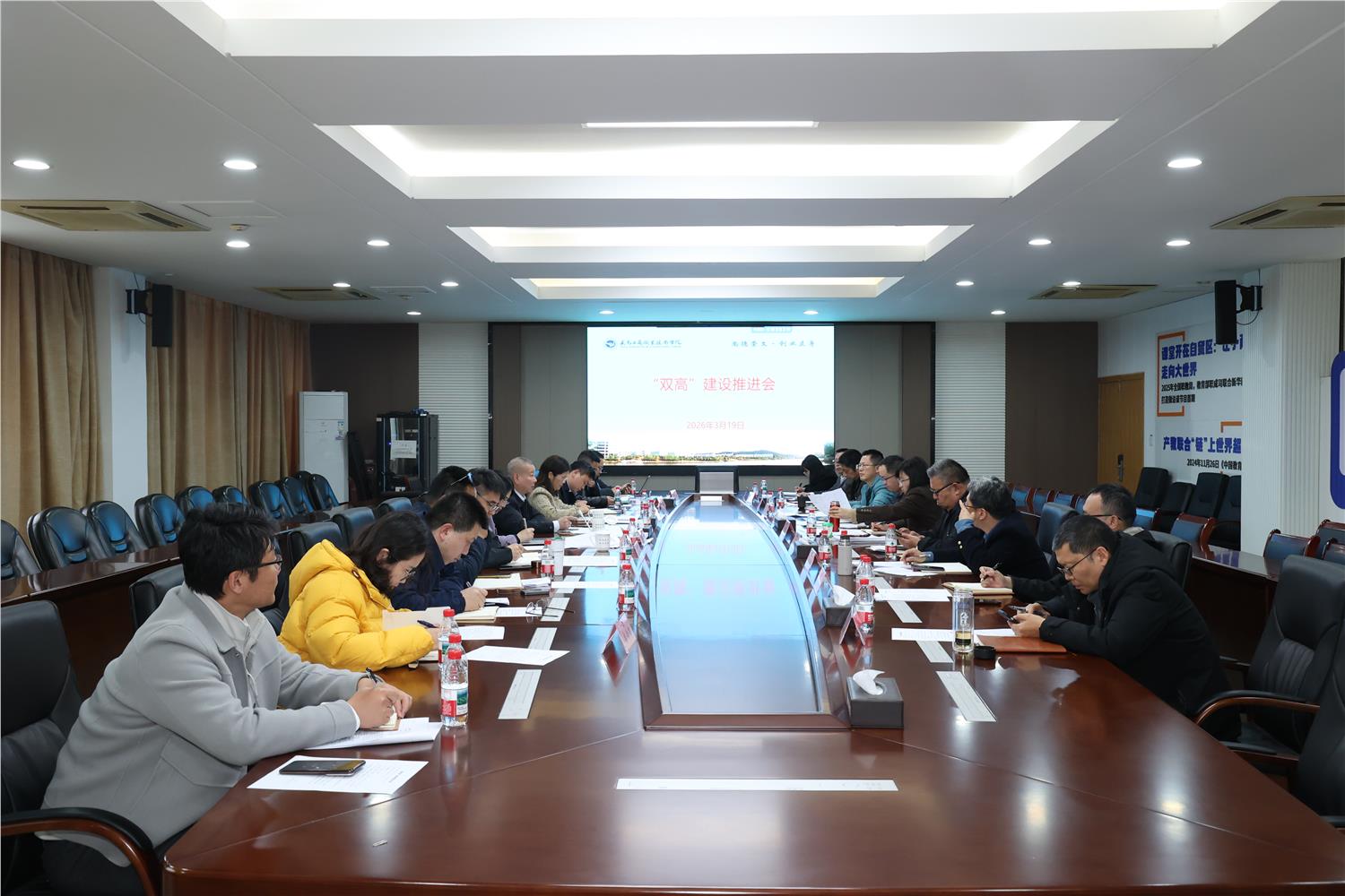 会上,两大专业群结合年度工作任务清单,汇报了建设进度及重大项目采购进展情况;双高办结合《关于建立健全“新双高”建设推进工作机制的通知(讨论稿)》,汇报了2026年“双高”建设整体工作要求;计财处结合项目库管理系统,解读了经费预算年度配套情况;教务处解读了《教学项目建设及经费管理办法(讨论稿)》。
