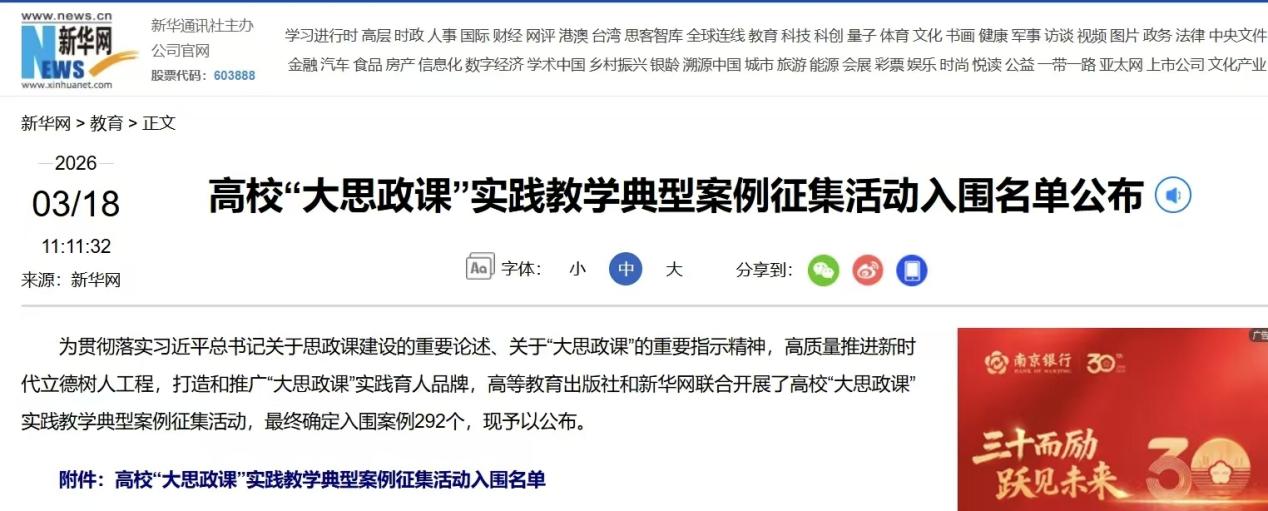 据悉,此次高校“大思政课”实践教学典型案例征集活动,旨在深入贯彻落实习近平总书记关于“大思政课”的重要指示精神,挖掘展示一批具有创新性、示范性、实效性的实践教学案例,推动高校思政课实践教学改革走深走实。入选案例将在高等教育出版社和新华网相关平台进行展示推广,为全国高校思政课建设提供有益借鉴。