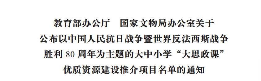 此次推介活动是教育部、国家文物局深入贯彻落实习近平文化思想和习近平总书记关于革命文物工作、学校思政课建设的重要论述精神,纪念中国人民抗日战争暨世界反法西斯战争胜利80周年,推进大中小学思政课一体化建设的重要举措。项目成功入选,既是对我校持续推进“大思政课”建设工作的充分肯定,也是学校深化馆校协同育人、推动优质思政资源共建共享的显著成果。