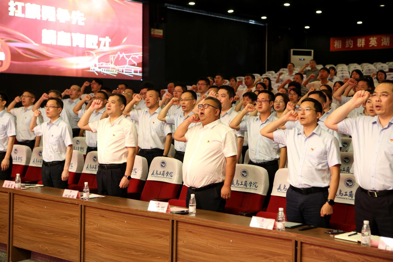 面对党旗,金华市优秀共产党员年艳带领在场党员同志一起重温入党誓词。“为共产主义奋斗终身,永不叛党!”铿锵有力的宣誓声响彻大厅。