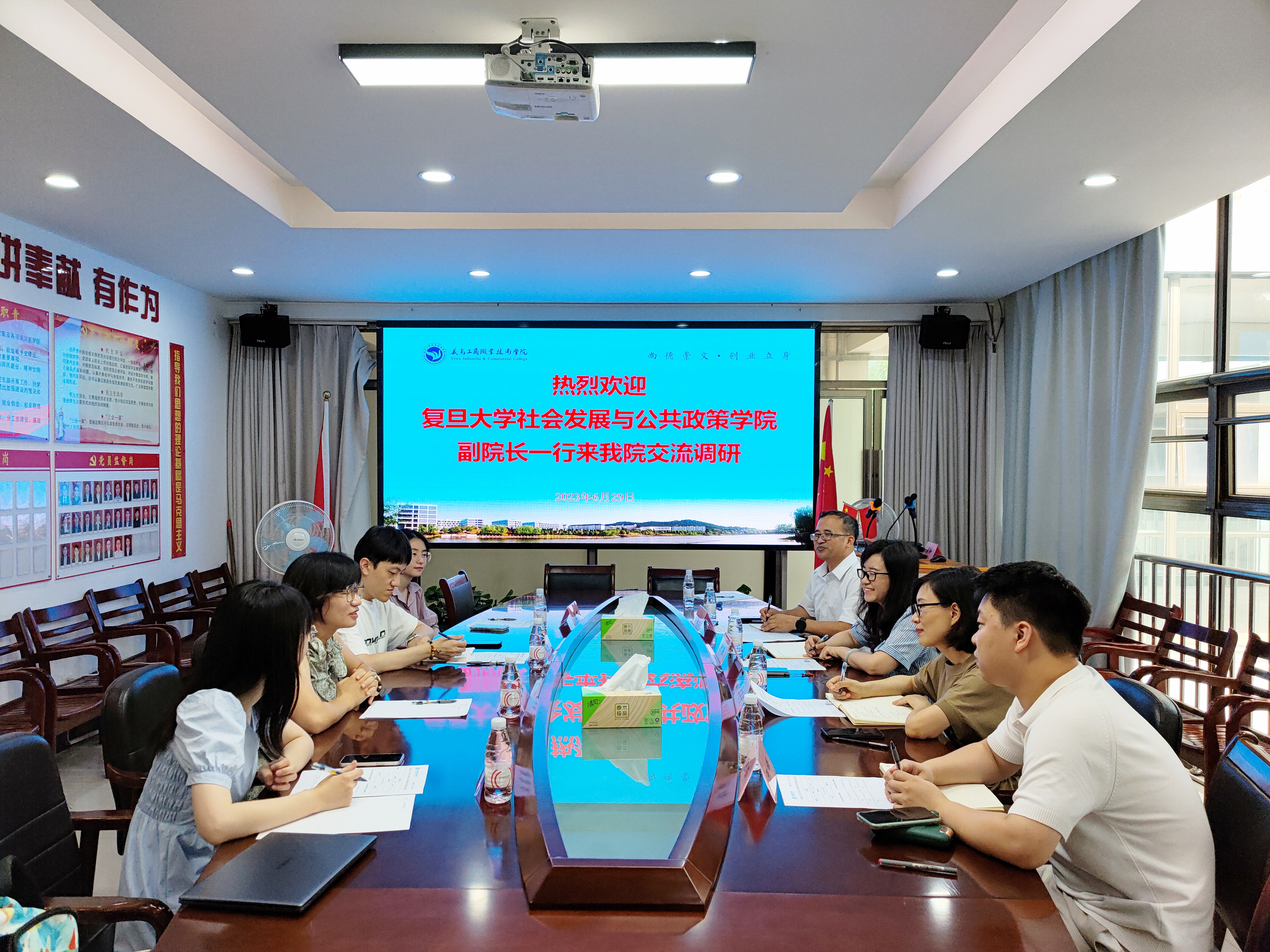 6月29日,复旦大学社会发展与公共政策学院副院长田丰教授携三名博士生莅临义乌工商职业技术学院,进行学术交流和调研。此次访问旨在深入研究社会工作专业在地方的嵌入发展、探讨义乌国际融合社区建设中的专业参与、并就双方进一步加强科研合作,推动社会工作行业的发展进行协商。