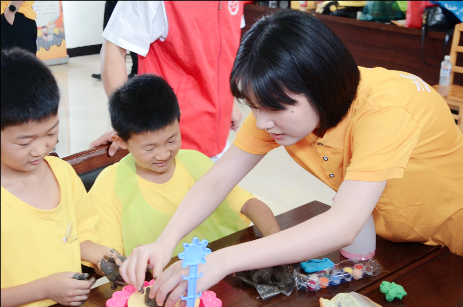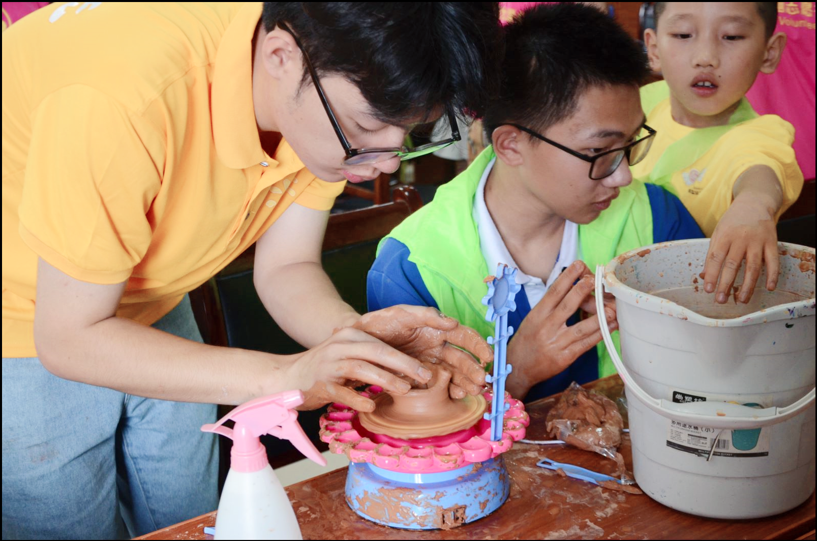 与“泥”相约,匠心传承,以美育人。7月4号上午,义乌工商职业技术学校创意设计学院“艺”束光暑期社会实践团队来到了金华市浦江县,与金华浮白科技有限公司、浦江县龙峰公益之家和公益小天使联合举办了“艺”束光艺术课堂——多彩非遗亲子陶艺艺术课堂活动,让家长和孩子们共同体验非遗文化的魅力,受到40余名亲子的热烈欢迎。