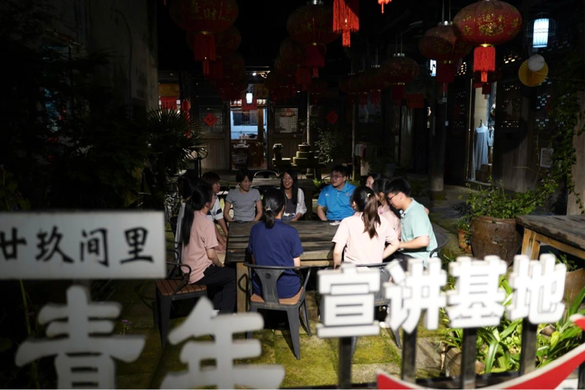 沿着村民口中的康庄大道——S210省道,实践团成员实地走访了省级民主法治村新光村,中国诗人小镇上河村,以“清境、亲乡、轻度假”为主题的朱宅、利民等村,围绕基层治理环境整治、产业转型、乡村振兴等方面对当地村委、当地村民开展入户走访,并参观当地党群服务中心。此外,暑期社会实践团在国家级乡村旅游创客示范基地“廿玖间里”开展理论宣讲,从一枚小小的中国结系到“浦江经验”,让村民们体会二十年来乡村发展变化,也让同学们走进基层做好实践。