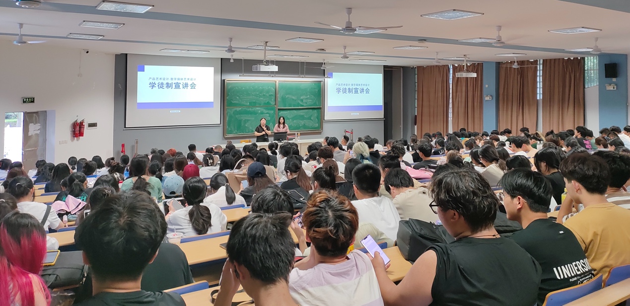 2023年9月18日,创意设计学院“现代学徒制宣讲会”在学校阶梯教室顺利举办。会议由产品艺术设计专业、数字媒体艺术设计专业教研室相关负责人主持开展,相关专业240余名学生与以义乌市创意园入驻企业为主的12家长期合作企业参加会议。