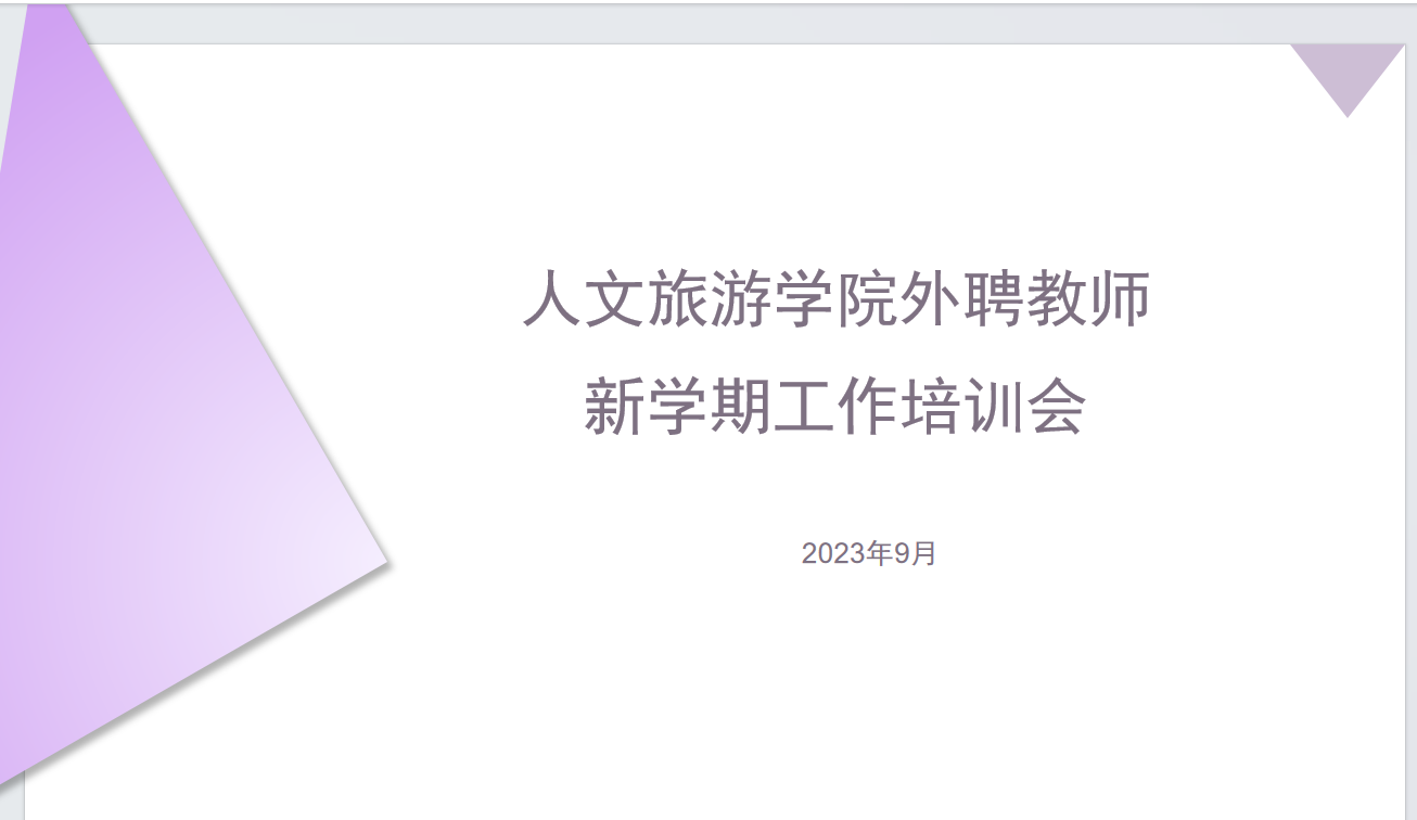 9月25日下午,人文旅游学院召开了一场特别的线上培训会,旨在提高校外兼职教师的教育教学能力。参加会议的包括学院教学负责人、校内教师以及来自各行各业本学期有教学任务的校外兼职教师。