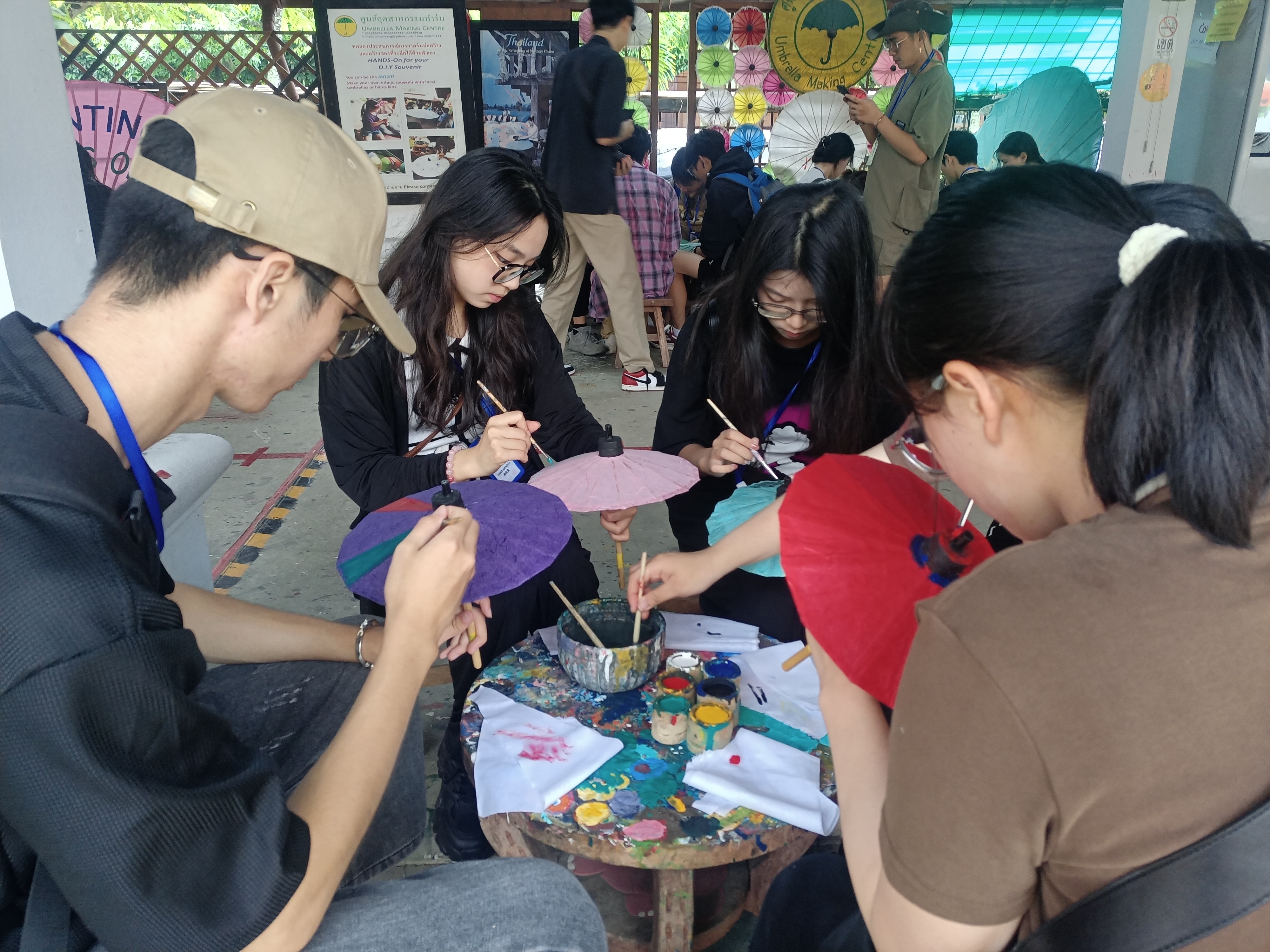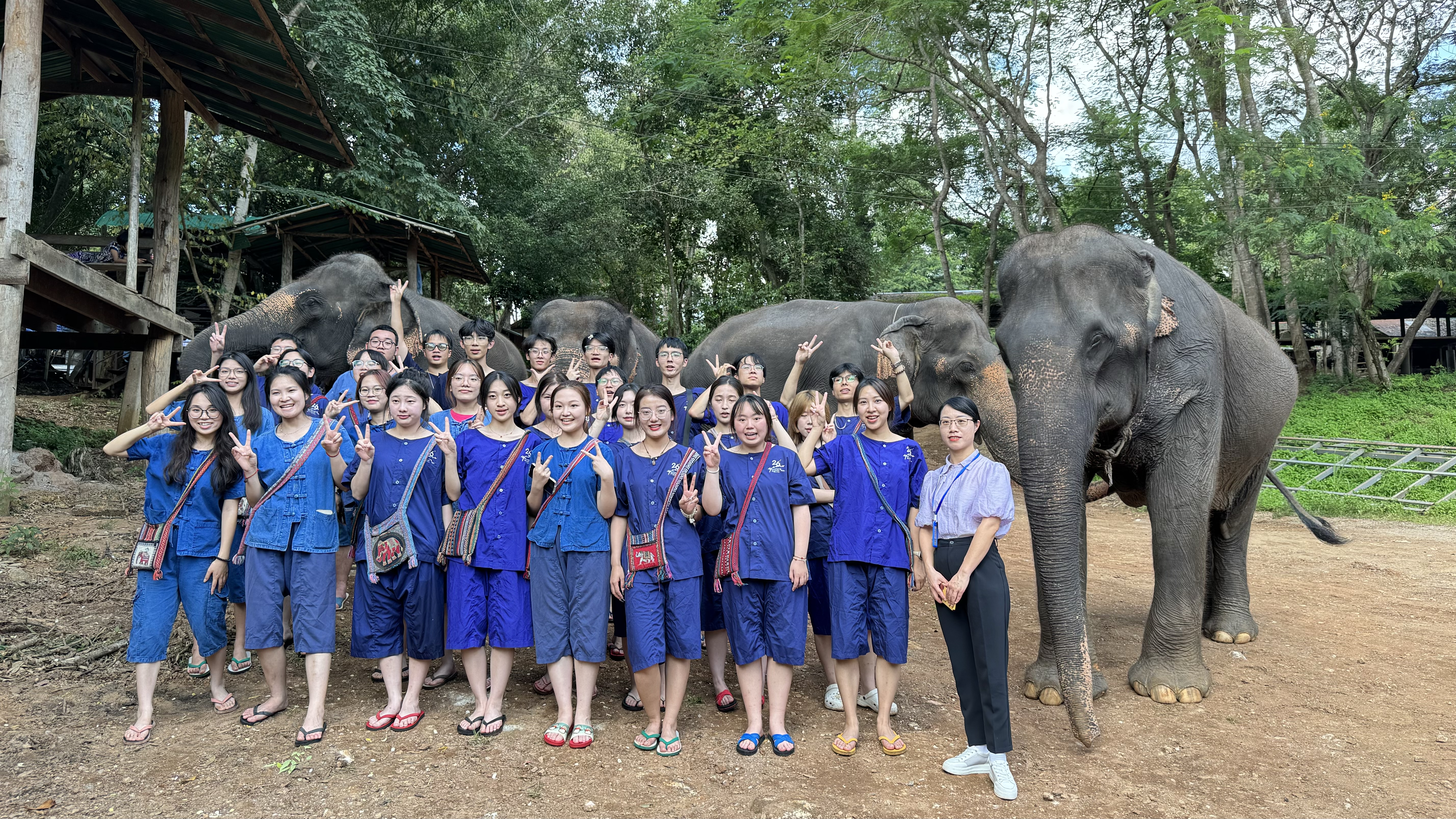 我校学子展示直播电商技能 本次研学还设置了湄登大象自然保护区、塔佩门文创集市、清迈纸伞制作工艺中心、清迈陶瓷工坊等多个特色文化体验,进一步丰富了教育教学内容,提升学生的实践参与感,强化了中泰文化交流。