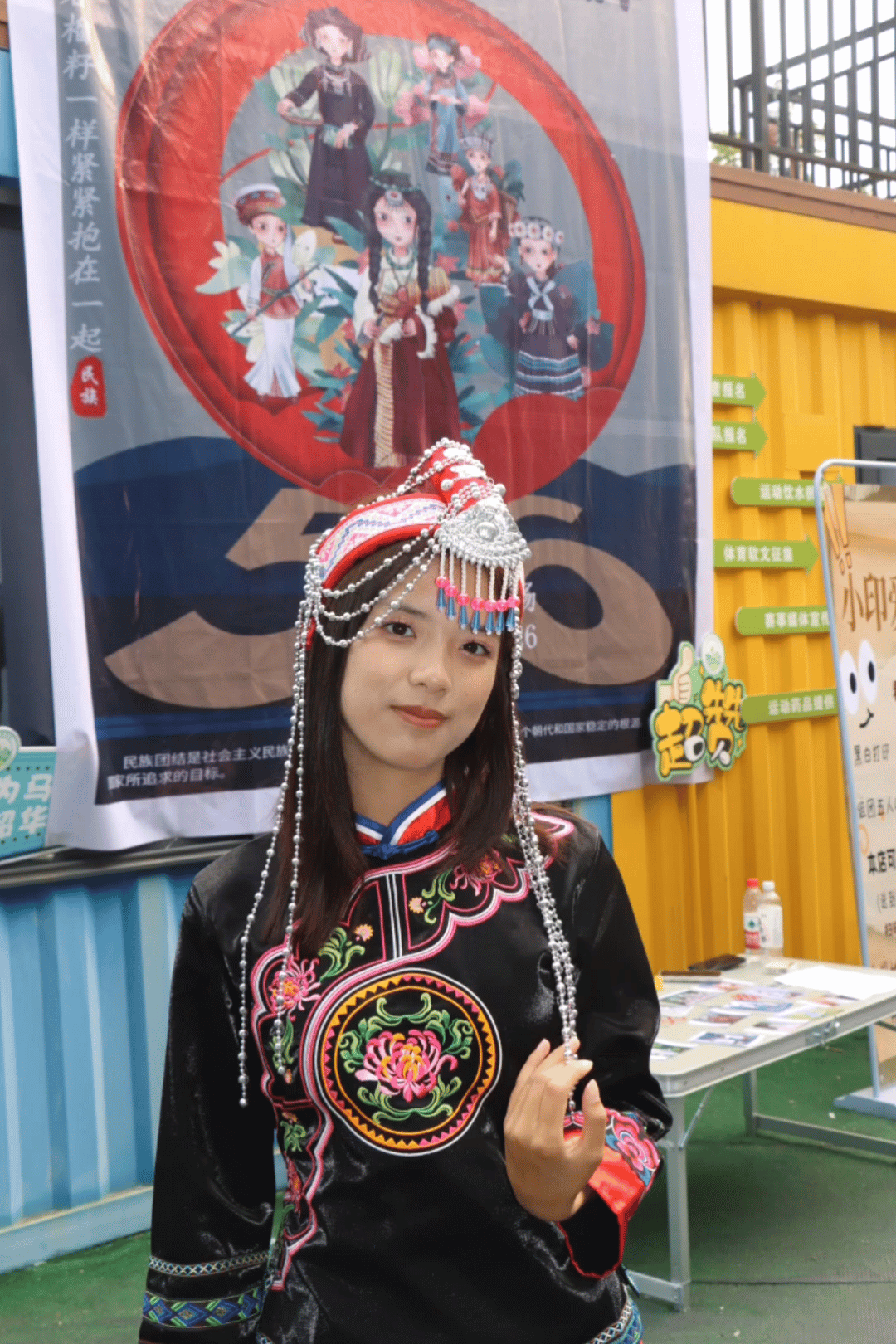 活动现场,会展专业学生为服装扮演者,身着苗族服装、侗族服装、水族服装、壮族服装、藏族服装、傣族服装、畲族服装、朝鲜族服装和汉服进行校园游走展览宣传。