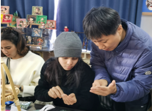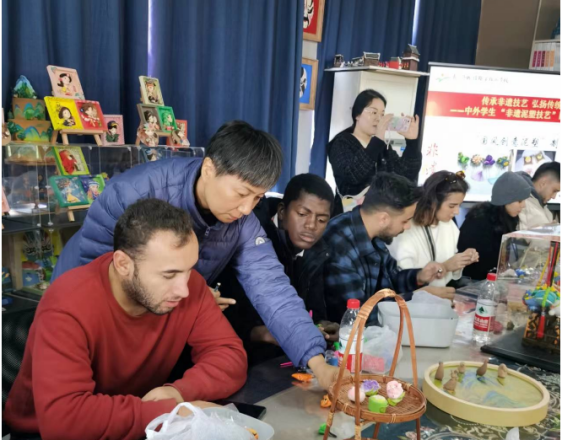 随后,国际学生们学习了面塑技艺,并积极参与到面塑制作过程之中,老师教,学生学,整个工作室始终洋溢着快乐的笑声。