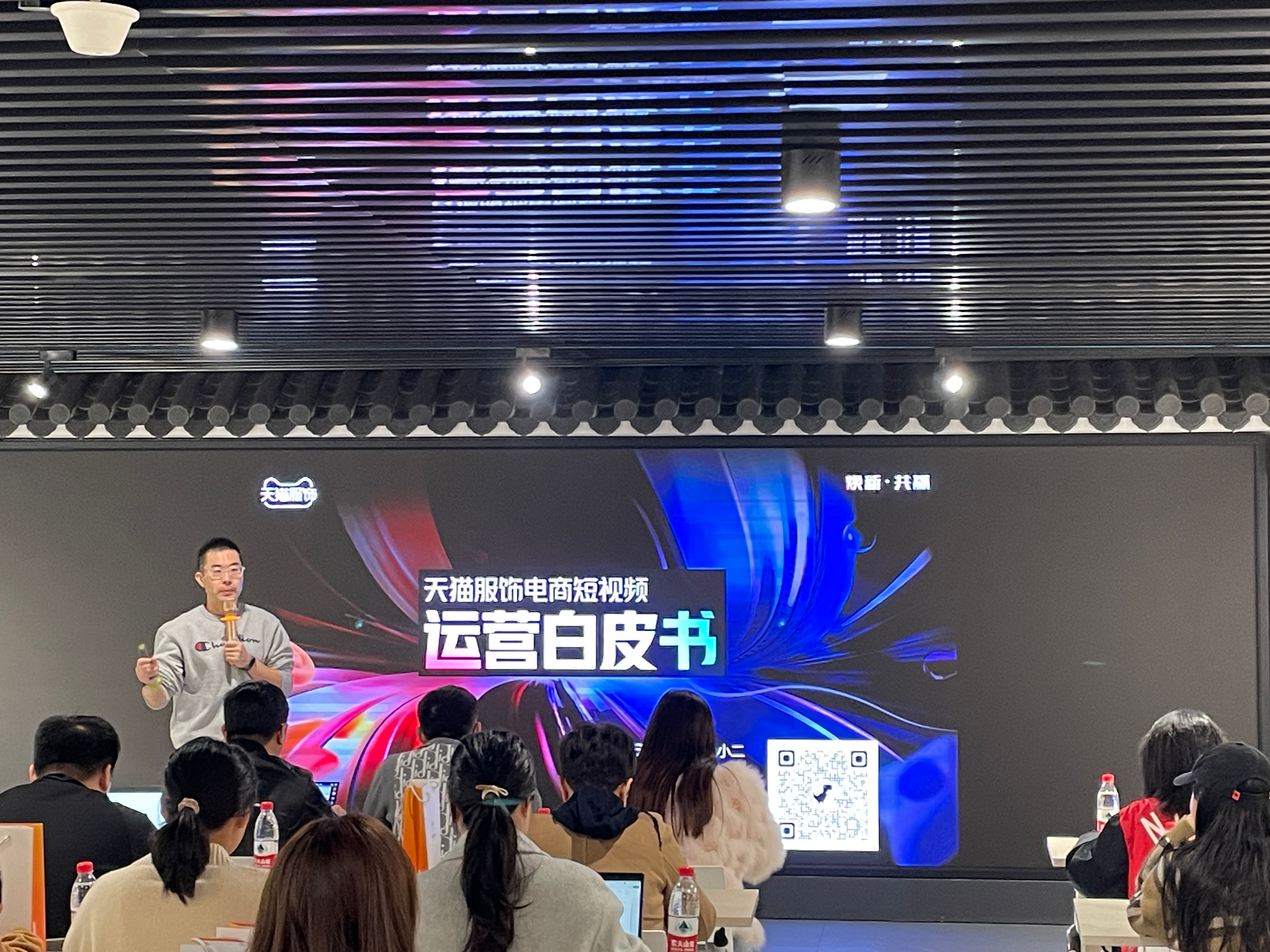 在活动现场,来自淘天集团的专家和天猫服饰小二对《天猫服饰电商短视频白皮书》进行了深入解读,详细介绍了淘系短视频的落地执行和数据诊断沙盘等内容。同时,学院学生也分享了他们的短视频运营经验。