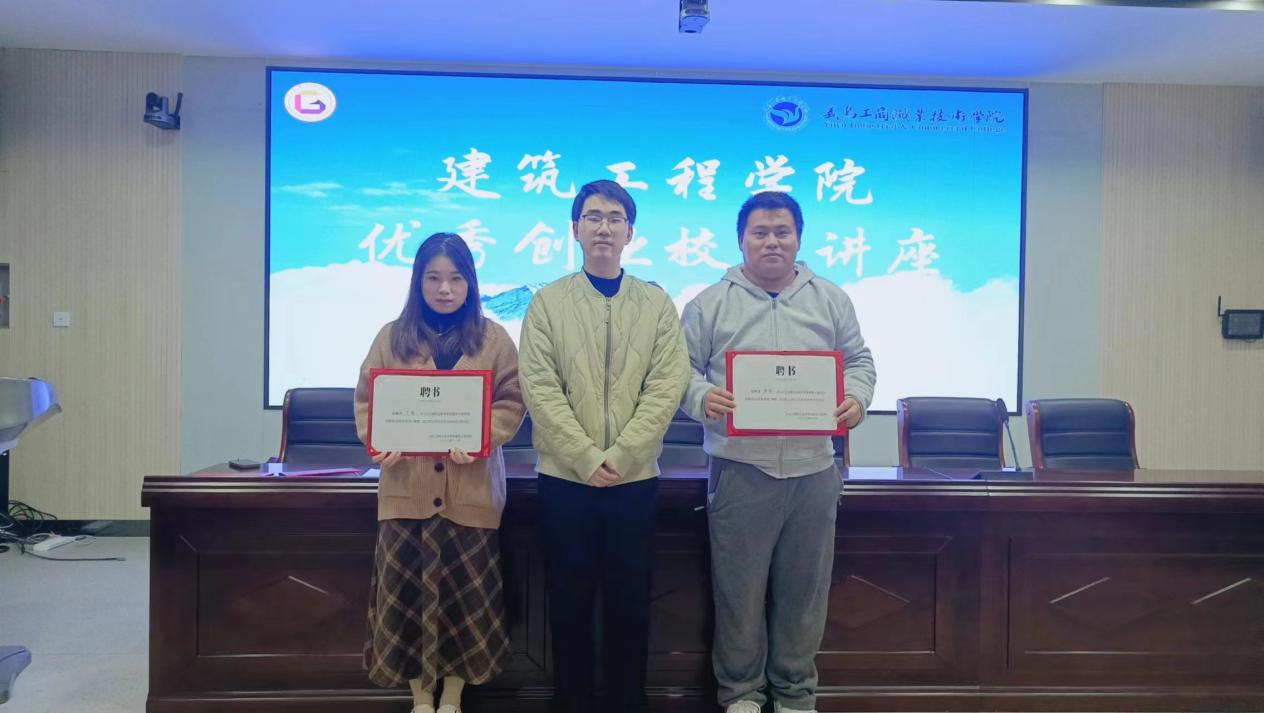 讲座结束后,建筑工程学院为李韬和丁盼颁发了创新创业校友导师聘书。同学们与学长学姐继续进行深度交流,探讨下一步的合作学习方式,创业热情在教室内得到尽情释放。