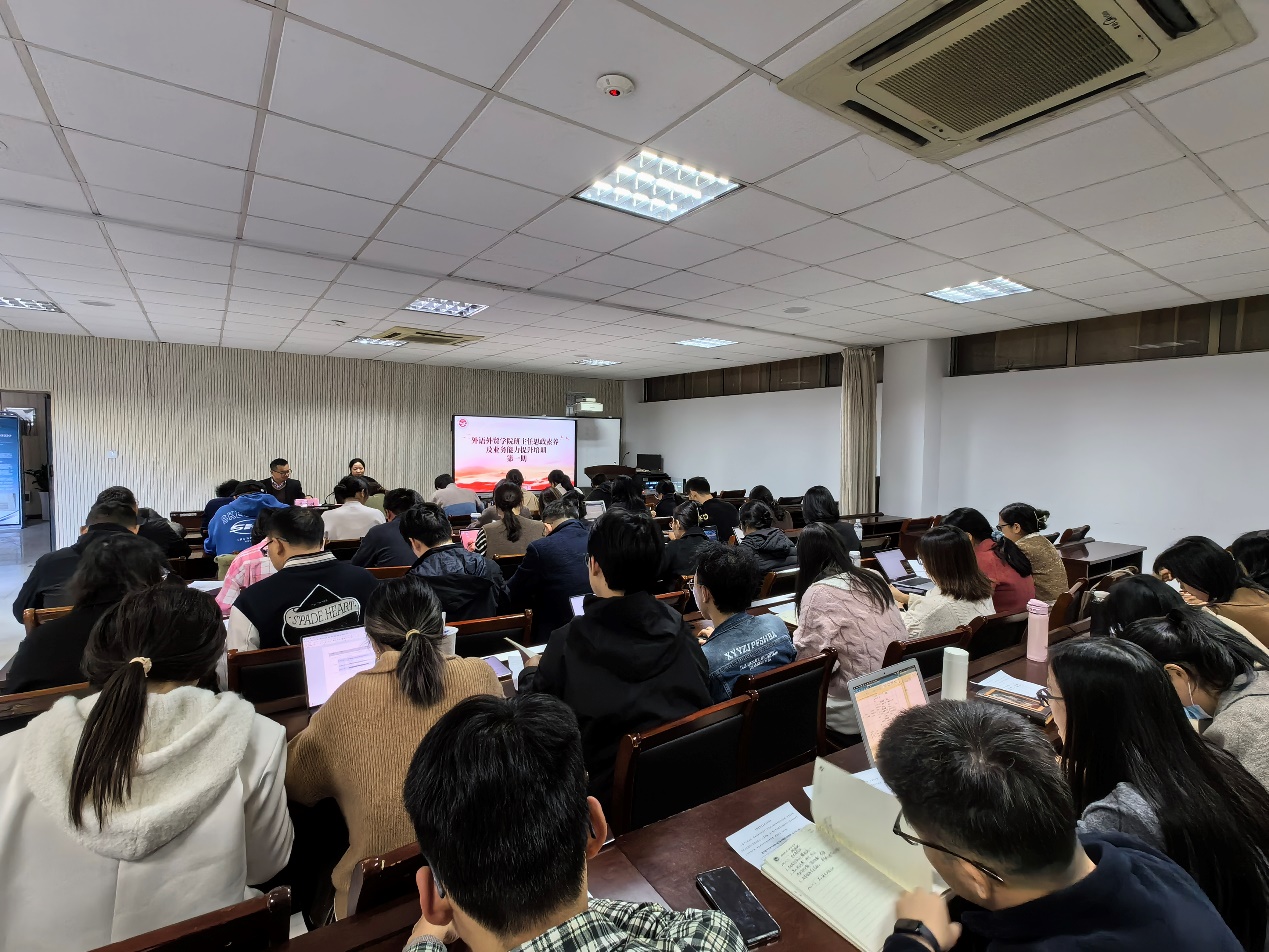 为提升班主任职业素养和专业能力,推动学院班主任队伍高素质、专业化建设,11月27日,外语外贸学院举办第一期班主任思政素养及业务能力提升培训,学院党委负责人出席并作讲话,全体班主任、辅导员参加培训。
