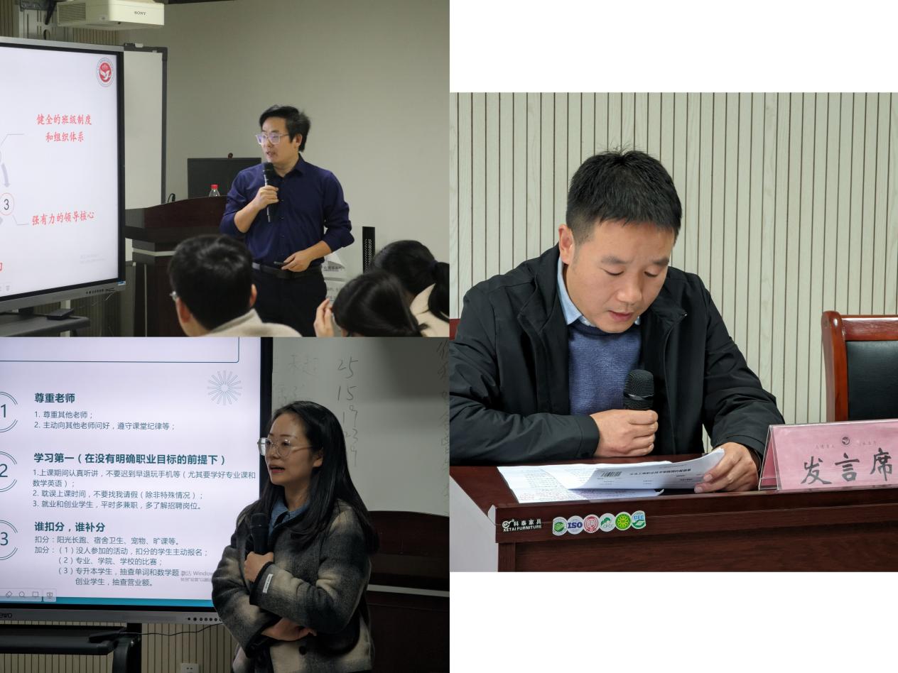学院党委负责人总结回顾了今年以来学院在班主任工作方面取得的成绩,通报了近期发生的学生安全突发事件,并对当前班主任工作中存在的问题进行了深入的分析。最后,他对班主任履职尽责提出了三点希望和要求:第一,班主任要用责任和担当铸底色,做立德树人、甘于奉献的教育者。班主任要明白自己的育人本职,学会付出和奉献,不折不扣地将班级工作放到心上,落到实处;第二,班主任要用热爱和良心绘亮色,做贴近学生、关心学生的引路人。班主任工作是一件良心活,它不仅是一项工作,更是一项伟大的育人事业。第三,班主任要用技术和经验强自身,做有招有式、高效有力的管理者。班主任要从用好学生干部力量、抓好重点学生管理、主动贴近学生提升实操技能等方面下功夫。