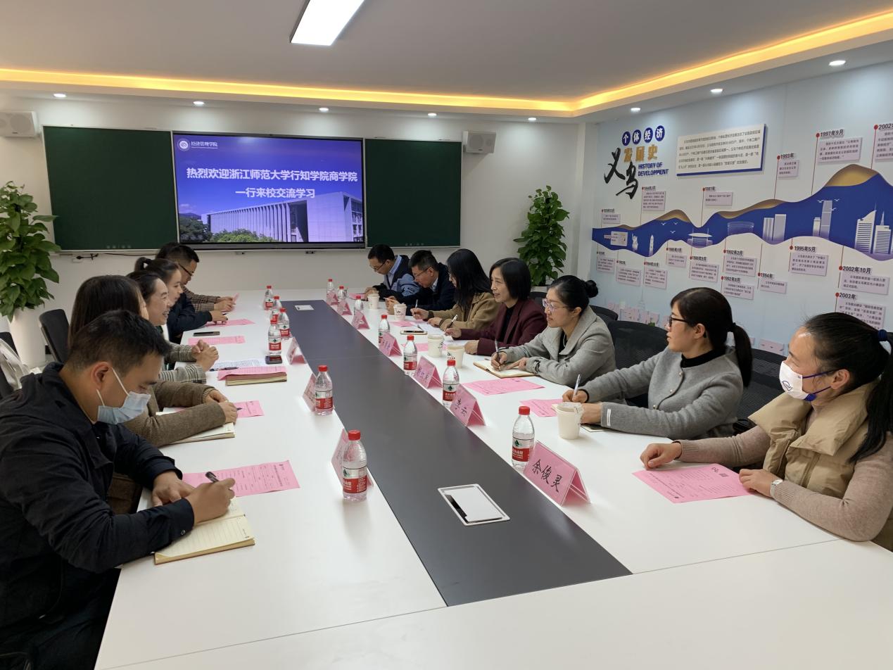11月29日下午,浙江师范大学行知学院商学院院长麻勇爱一行7人来我校考察交流。经济管理学院教学负责人,金融服务与管理、工商企业管理专业负责人及相关专任教师参加座谈。