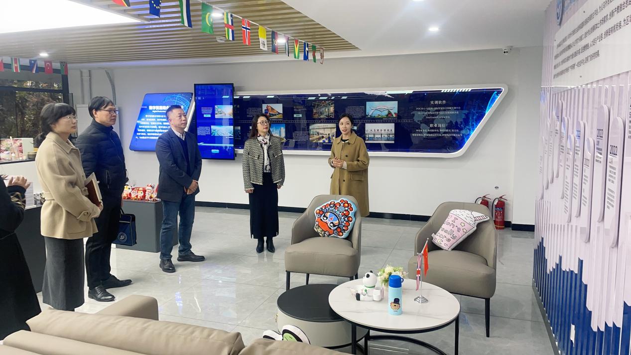 在国际创客园,於芳一行参观了国际创客园、国际教育学院和四海咖啡吧。随后,双方在国际创客园进行了座谈。国际教育学院、外语外贸学院和经济管理学院相关负责人参加了座谈。