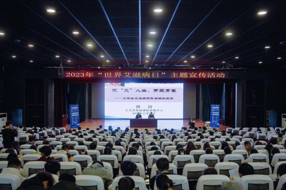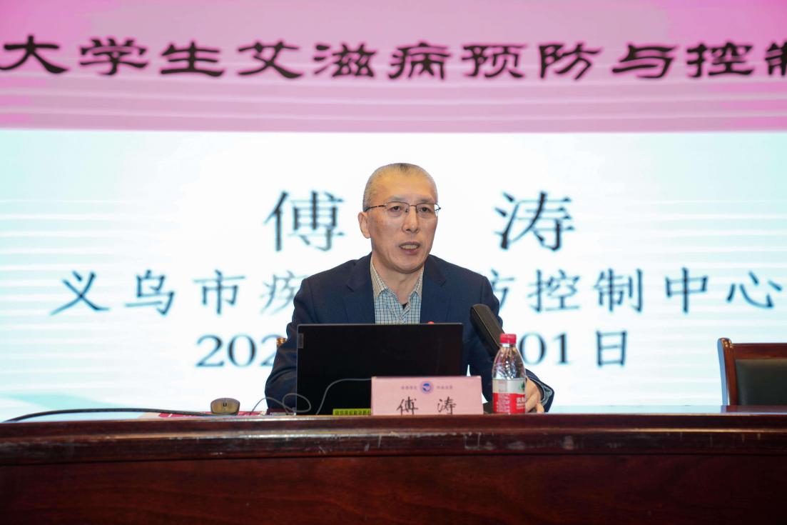 12月1日是第36个“世界艾滋病日”,今年宣传活动的主题是“凝聚社会力量,合力共抗艾滋”。为进一步做好校园预防艾滋病宣传,普及艾滋病防治知识,提高学生防控艾滋病和自我健康保护意识,12月1日下午,义乌市疾病预防控制中心原书记、主任傅涛受邀来校,在丹溪文化厅为我校学生开展“无艾人生,有爱青春”的防艾主题宣传讲座。