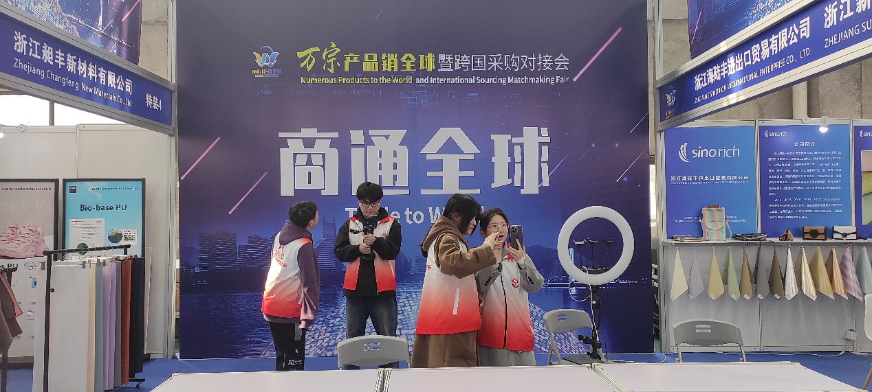 跨境直播作为一种新型的互联网营销方式,为电商卖家、外贸工厂等提供了更广阔的市场和更多的商机,同时也提高了消费者的购物体验。近日,外语外贸学院的多语种跨境直播中心师生团队,受我校优秀毕业生钟佳媚创立的义乌博裕会展公司委托,分别前往浙江丽水和湖州,参与了两大重要展会——“情系丽水,商通全球”万宗产品销全球暨跨国采购对接会和2023年中国(吴兴织里)国际童装产业贸易洽谈会,以跨境电商直播的形式,为校友企业提供有力的技术支持。
