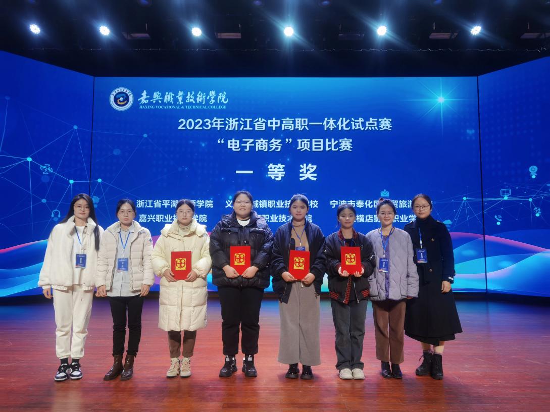 12月15日-16日,2023年浙江省中高职一体化试点赛“电子商务”项目比赛在嘉兴职业技术学院举行。大赛由浙江省教育厅主办,浙江省教育厅职成教教研室承办,嘉兴职业技术学院协办,共有来自全省11个地市的29支队伍参赛。经过全省的激烈角逐,由我校22电商3班徐叶青、23电创2班刘佳盈同学与来自义乌城镇职业技术学校的金可馨、杨敏同学共同组成的参赛队伍脱颖而出,荣获省赛一等奖。