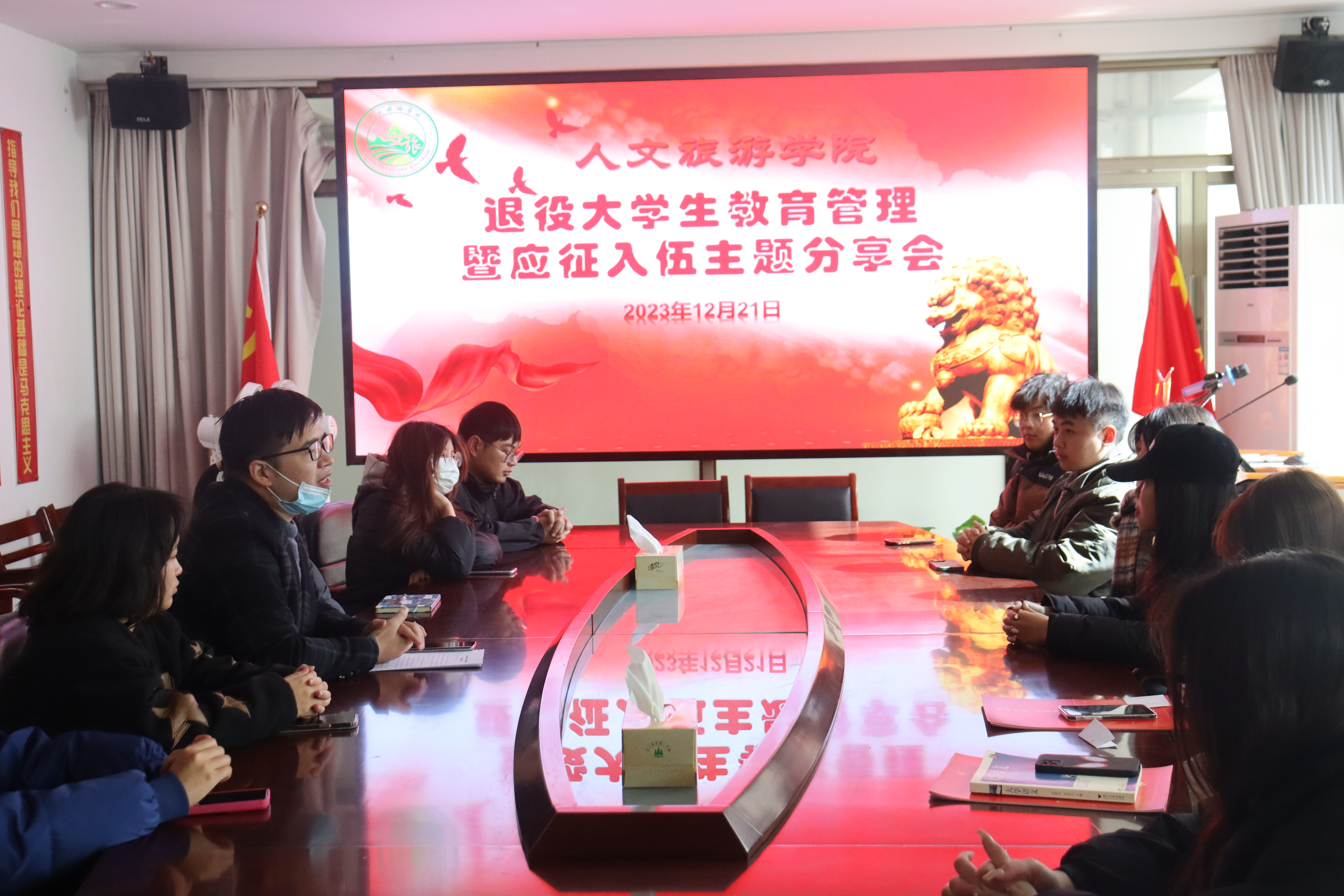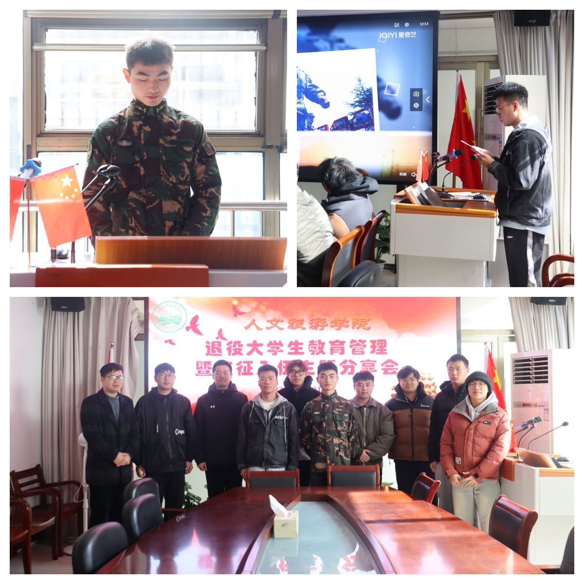 为了扎实推进大学生国防教育和征兵工作,切实做好退伍复学学生的管理和服务,12月21日下午,人文旅游学院召开退役大学生应征入伍经历分享会。分享会由学院征兵辅导员主持,全体在校退役大学生以及有当兵意愿的学生共计四十余人参加了本次活动。